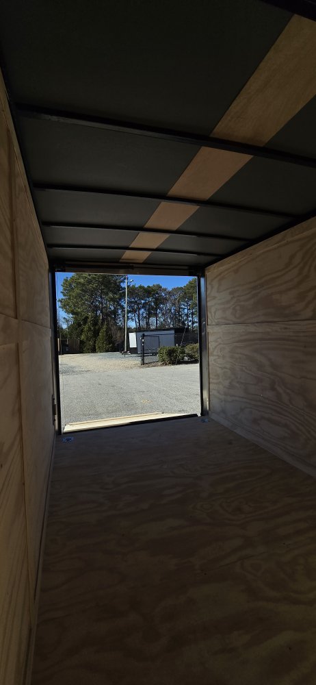 This heavy-duty enclosed trailer is built with a robust 6" steel tube main frame and features 24" on-center spacing for its roof bows, and 16” on floor cross members, and sidewalls, ensuring superior structural integrity. It boasts a durable ¾" plywood floor and 3/8" plywood walls, complemented by a Therma Cool ceiling liner for climate management. Access is convenient through a 36" side door with a flush lock, illuminated by a 12-volt LED dome light. It rides smoothly on 3500 lbs. drop leaf spring axles equipped with electric brakes on both axles and E-Z Lube hubs, all on silver mod wheels with aluminum fenders. Additional features include a 2 5/16" coupler, 24" stone guard, a streamlined V-nose design, and full LED lighting. Inside, 4 floor mount D-rings help secure your cargo, and it connects easily with a 7-way Bargman plug.