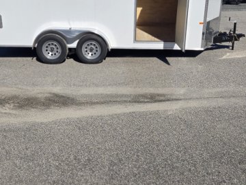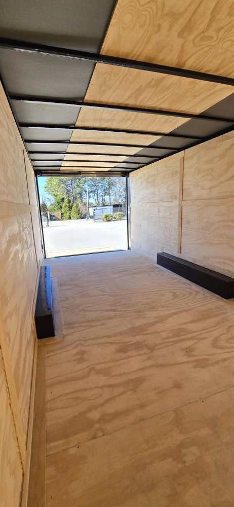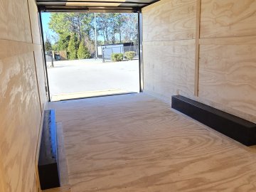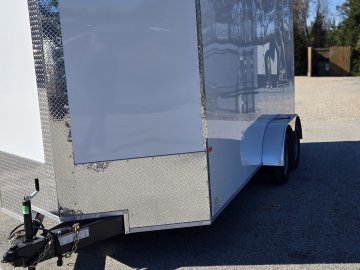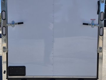 This heavy-duty enclosed trailer is built with a robust 6" steel tube main frame and features 24" on-center spacing for its roof bows, and 16” on floor cross members, and sidewalls, ensuring superior structural integrity. It boasts a durable ¾" plywood floor and 3/8" plywood walls, complemented by a Therma Cool ceiling liner for climate management. Access is convenient through a 36" side door with a flush lock, illuminated by a 12-volt LED dome light. It rides smoothly on 3500 lbs. drop leaf spring axles equipped with electric brakes on both axles and E-Z Lube hubs, all on silver mod wheels with aluminum fenders. Additional features include a 2 5/16" coupler, 24" stone guard, a streamlined V-nose design, and full LED lighting. Inside, 4 floor mount D-rings help secure your cargo, and it connects easily with a 7-way Bargman plug.