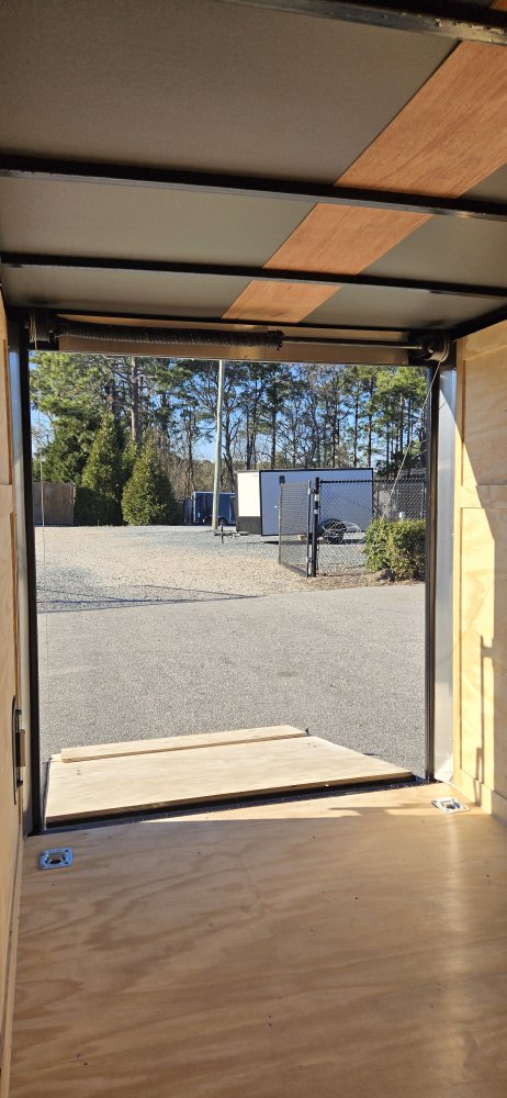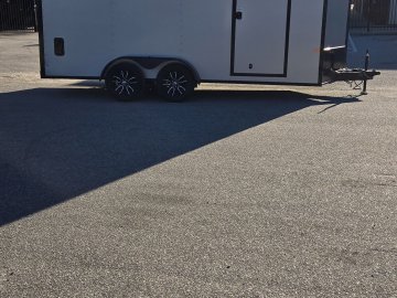 This heavy-duty enclosed trailer is built with a robust 4" steel tube main frame and features 24" on-center spacing for the roof bows, and 16” on floor cross members, and sidewalls for superior strength. It includes a durable ¾" plywood floor and 3/8" plywood walls, along with a Therma Cool ceiling liner for climate control. Access is convenient through a 36" side door with a flush lock, illuminated by a 12-volt LED dome light. It rides smoothly on 3500 lbs. drop leaf spring axles equipped with electric brakes on both axles and E-Z Lube hubs, all on silver mod