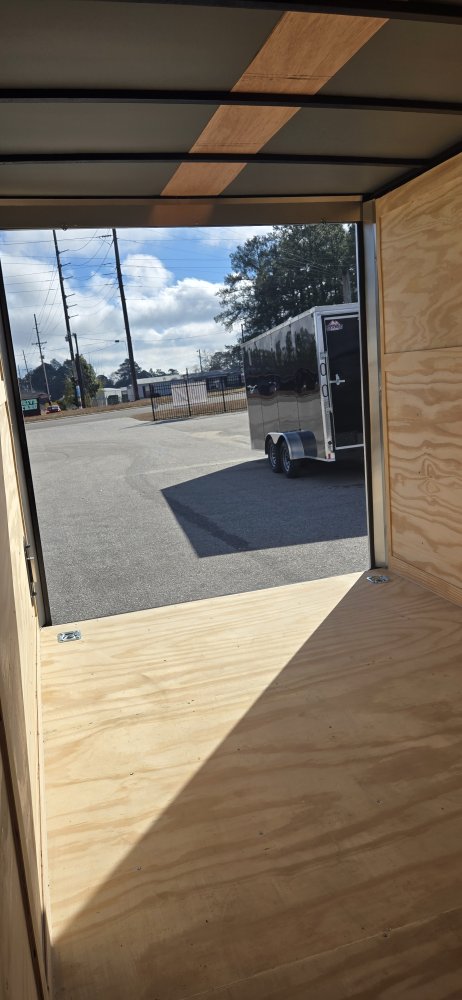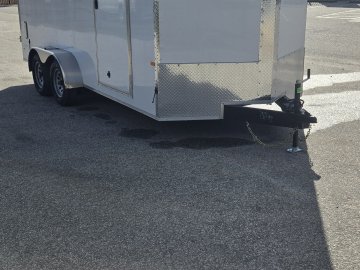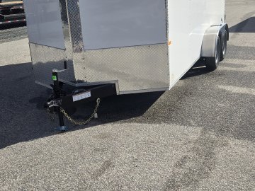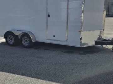 This heavy-duty enclosed trailer is built with a robust 6" steel tube main frame and features 24" on-center spacing for its roof bows, and 16” on floor cross members, and sidewalls, ensuring superior structural integrity. It boasts a durable ¾" plywood floor and 3/8" plywood walls, complemented by a Therma Cool ceiling liner for climate management. Access is convenient through a 36" side door with a flush lock, illuminated by a 12-volt LED dome light. It rides smoothly on 3500 lbs. drop leaf spring axles equipped with electric brakes on both axles and E-Z Lube hubs, all on silver mod wheels with aluminum fenders. Additional features include a 2 5/16" coupler, 24" stone guard, a streamlined V-nose design, and full LED lighting. Inside, 4 floor mount D-rings help secure your cargo, and it connects easily with a 7-way Bargman plug.walls, complemented by a Therma Cool ceiling liner for climate management. Access is convenient through a 36" side door with a flush lock, illuminated by a 12-volt LED dome light. It rides smoothly on 3500 lbs. drop leaf spring axles equipped with electric brakes on both axles and E-Z Lube hubs, all on silver mod wheels with aluminum fenders. Additional features include a 2 5/16" coupler, 24" stone guard, a streamlined V-nose design, and full LED lighting. Inside, 4 floor mount D-rings help secure your cargo, and it connects easily with a 7-way Bargman plug.