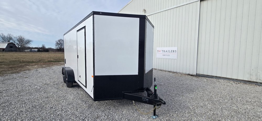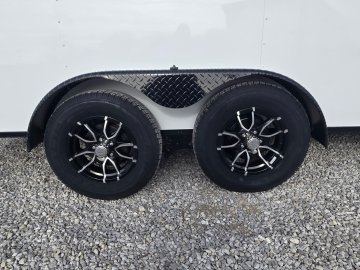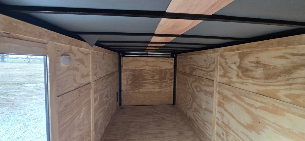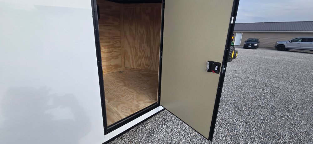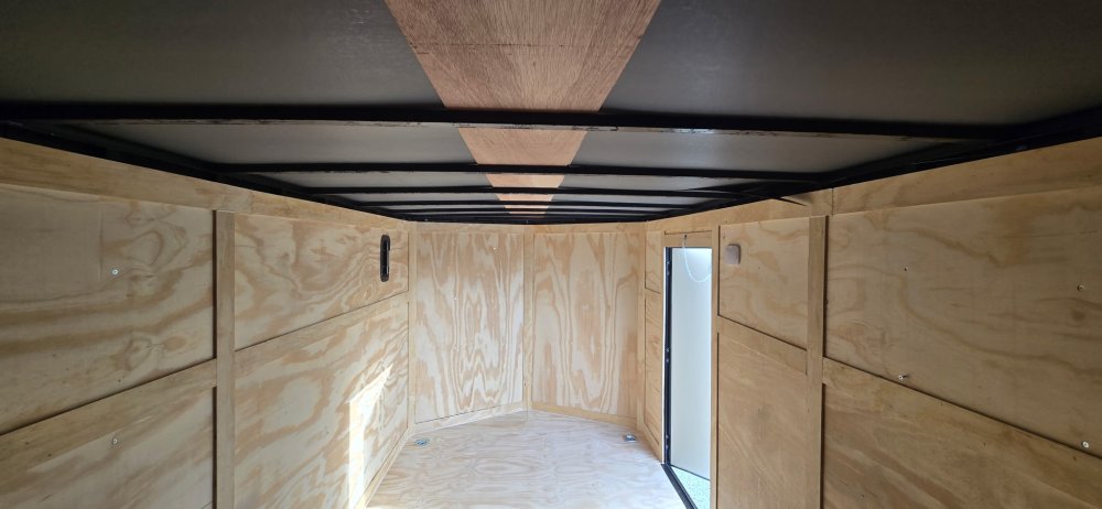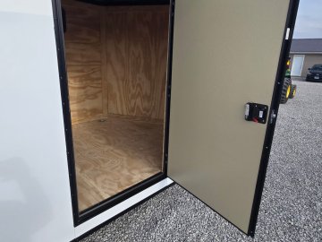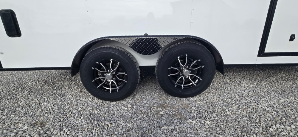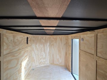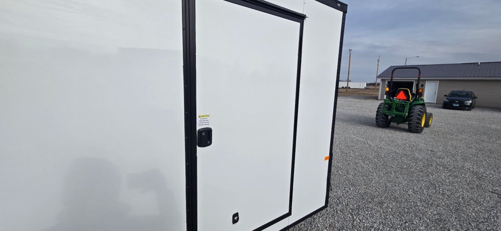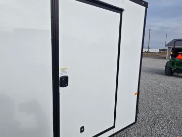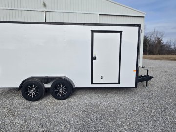 This heavy-duty enclosed trailer is built with a robust 6" steel tube main frame and features 24" on-center spacing for its roof bows, and 16" on floor cross members, and sidewalls, ensuring superior structural integrity. It boasts a durable ¾" plywood floor and 3/8" plywood walls, complemented by a Therma Cool ceiling liner for climate management. Access is convenient through a 36" side door with a flush lock, illuminated by a 12-volt LED dome light. It rides smoothly on 3500 lbs. drop leaf spring axles equipped with electric brakes on both axles and E-Z Lube hubs, all on silver mod wheels with aluminum fenders. Additional features include a 2 5/16" coupler, 24" stone guard, a streamlined V-nose design, and full LED lighting. Inside, 4 floor mount D-rings help secure your cargo, and it connects easily with a 7-way Bargman plug.