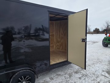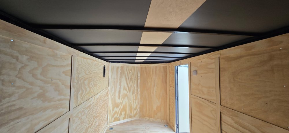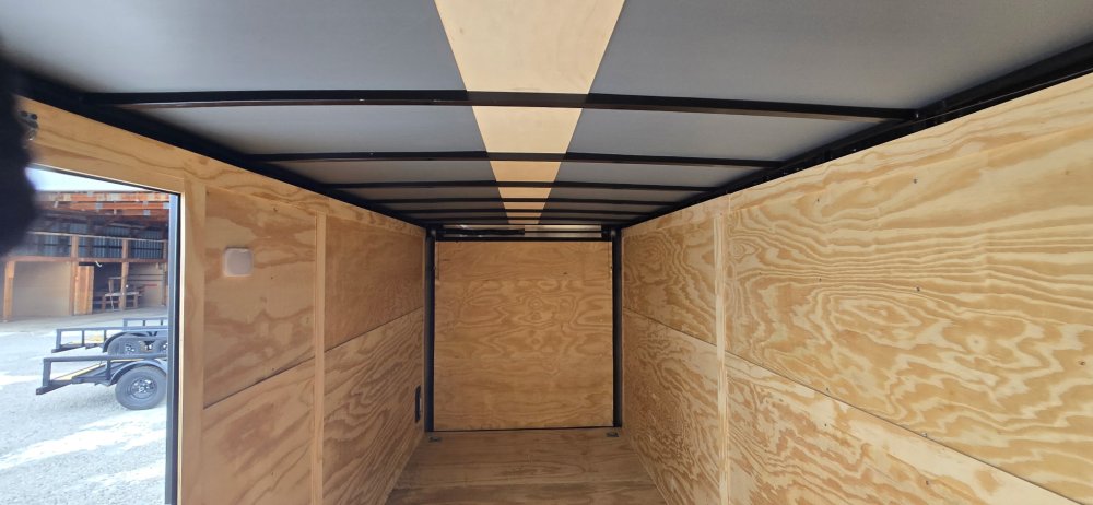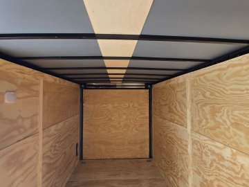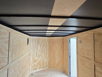 This heavy-duty enclosed trailer is built with a robust 6" steel tube main frame and features 24" on-center spacing for its roof bows, and 16” on floor cross members, and sidewalls, ensuring superior structural integrity. It boasts a durable ¾" plywood floor and 3/8" plywood walls, complemented by a Therma Cool ceiling liner for climate management. Access is convenient through a 36" side door with a flush lock, illuminated by a 12-volt LED dome light. It rides smoothly on 3500 lbs. drop leaf spring axles equipped with electric brakes on both axles and E-Z Lube hubs, all on silver mod wheels with aluminum fenders. Additional features include a 2 5/16" coupler, 24" stone guard, a streamlined V-nose design, and full LED lighting. Inside, 4 floor mount D-rings help secure your cargo, and it connects easily with a 7-way Bargman plug.