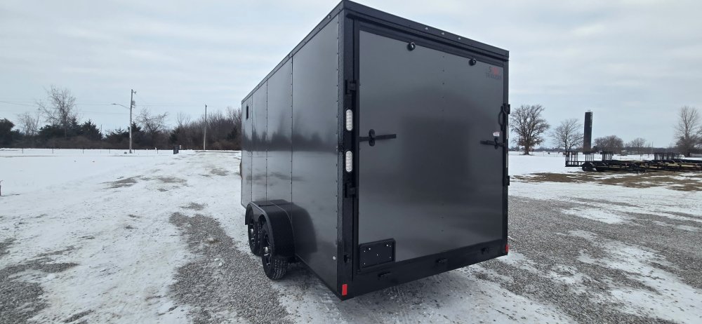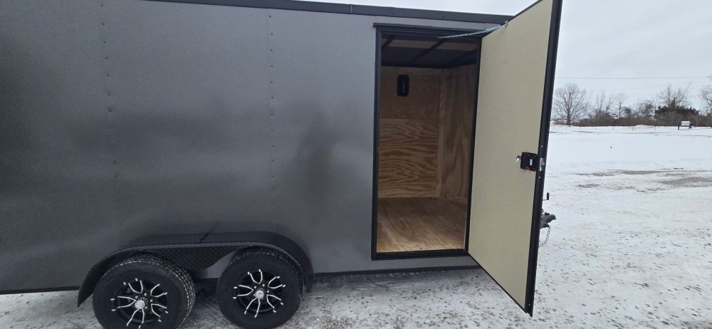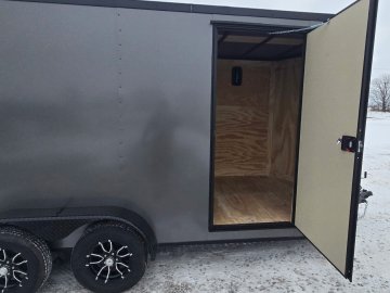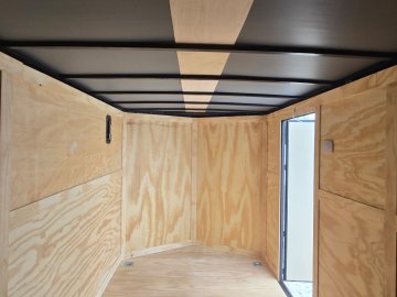 This heavy-duty enclosed trailer is built with a robust 6" steel tube main frame and features 24" on-center spacing for its roof bows, and 16” on floor cross members, and sidewalls, ensuring superior structural integrity. It boasts a durable ¾" plywood floor and 3/8" plywood walls, complemented by a Therma Cool ceiling liner for climate management. Access is convenient through a 36" side door with a flush lock, illuminated by a 12-volt LED dome light. It rides smoothly on 3500 lbs. drop leaf spring axles equipped with electric brakes on both axles and E-Z Lube hubs, all on silver mod wheels with aluminum fenders. Additional features include a 2 5/16" coupler, 24" stone guard, a streamlined V-nose design, and full LED lighting. Inside, 4 floor mount D-rings help secure your cargo, and it connects easily with a 7-way Bargman plug.