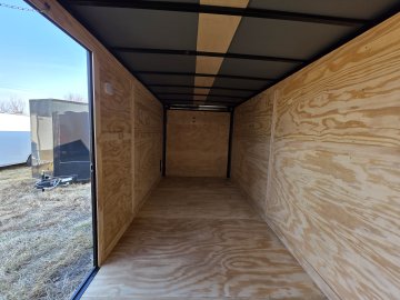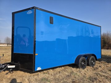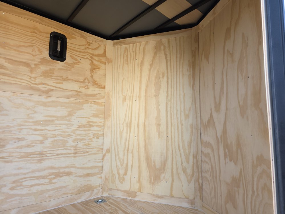 This heavy-duty enclosed trailer is built with a robust 6" steel tube main frame and features 24" on-center spacing for its roof bows, and 16” on floor cross members, and sidewalls, ensuring superior structural integrity. It boasts a durable ¾" plywood floor and 3/8" plywood walls, complemented by a Therma Cool ceiling liner for climate management. Access is convenient through a 36" side door with a flush lock, illuminated by a 12-volt LED dome light. It rides smoothly on 3500 lbs. drop leaf spring axles equipped with electric brakes on both axles and E-Z Lube hubs, all on silver mod wheels with aluminum fenders. Additional features include a 2 5/16" coupler, 24" stone guard, a streamlined V-nose design, and full LED lighting. Inside, 4 floor mount D-rings help secure your cargo, and it connects easily with a 7-way Bargman plug.