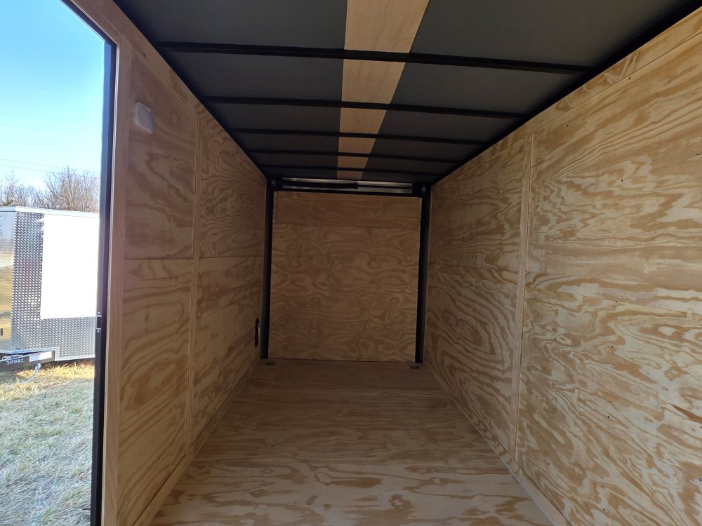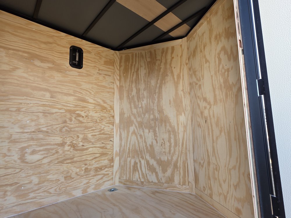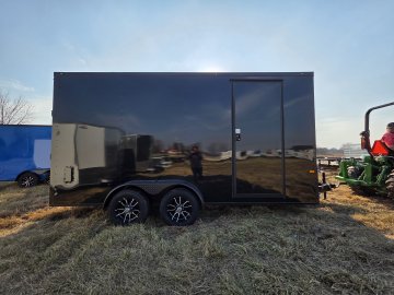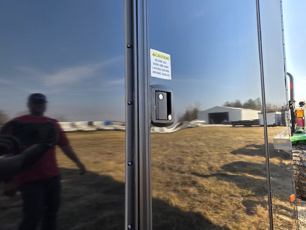 This heavy-duty enclosed trailer is built with a robust 6" steel tube main frame and features 24" on-center spacing for its roof bows, and 16” on floor cross members, and sidewalls, ensuring superior structural integrity. It boasts a durable ¾" plywood floor and 3/8" plywood walls, complemented by a Therma Cool ceiling liner for climate management. Access is convenient through a 36" side door with a flush lock, illuminated by a 12-volt LED dome light. It rides smoothly on 3500 lbs. drop leaf spring axles equipped with electric brakes on both axles and E-Z Lube hubs, all on silver mod wheels with aluminum fenders. Additional features include a 2 5/16" coupler, 24" stone guard, a streamlined V-nose design, and full LED lighting. Inside, 4 floor mount D-rings help secure your cargo, and it connects easily with a 7-way Bargman plug.
