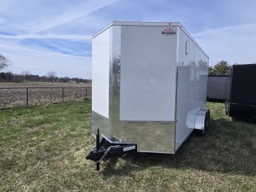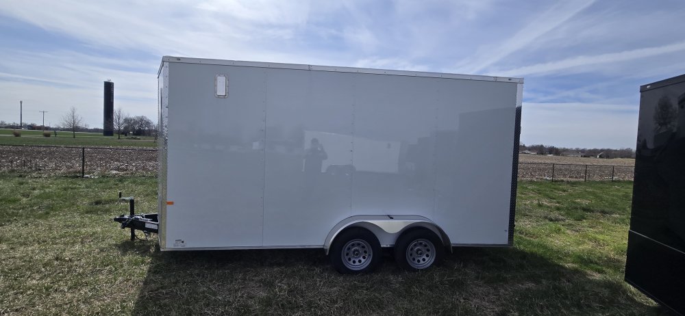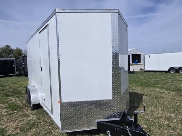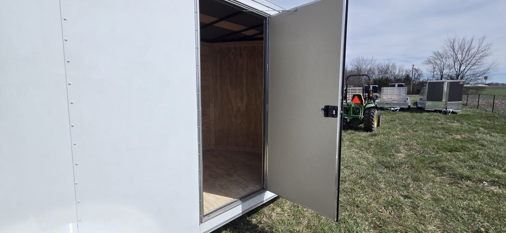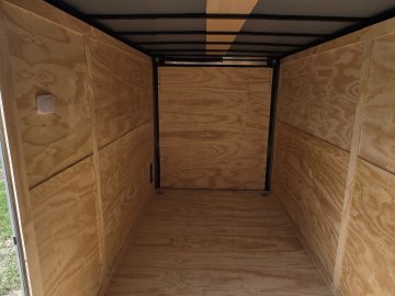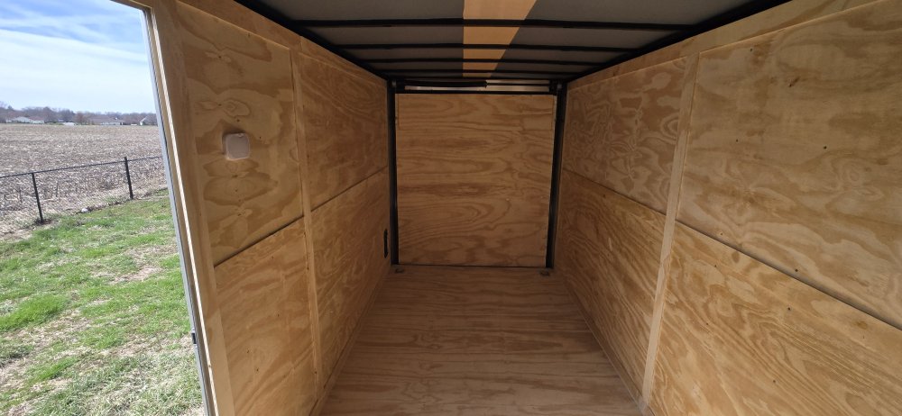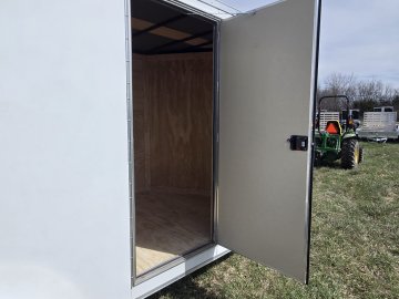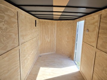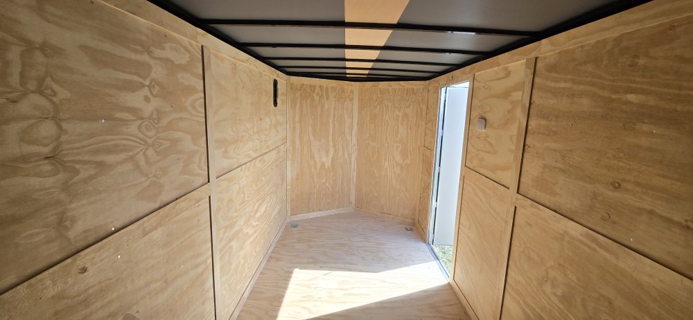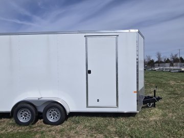 This heavy-duty enclosed trailer is built with a robust 6" steel tube main frame and features 24" on-center spacing for its roof bows, and 16” on floor cross members, and sidewalls, ensuring superior structural integrity. It boasts a durable ¾" plywood floor and 3/8" plywood walls, complemented by a Therma Cool ceiling liner for climate management. Access is convenient through a 36" side door with a flush lock, illuminated by a 12-volt LED dome light. It rides smoothly on 3500 lbs. drop leaf spring axles equipped with electric brakes on both axles and E-Z Lube hubs, all on silver mod wheels with aluminum fenders. Additional features include a 2 5/16" coupler, 24" stone guard, a streamlined V-nose design, and full LED lighting. Inside, 4 floor mount D-rings help secure your cargo, and it connects easily with a 7-way Bargman plug.