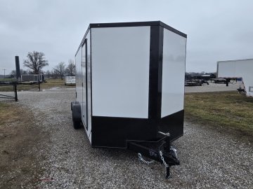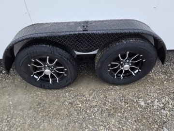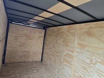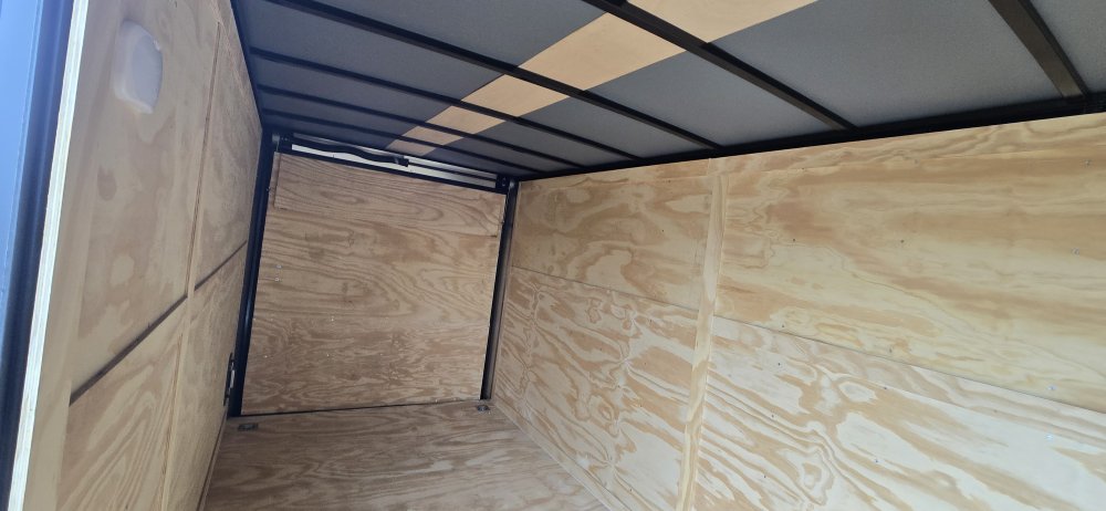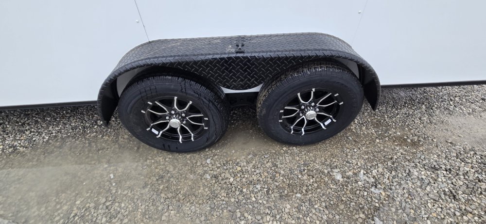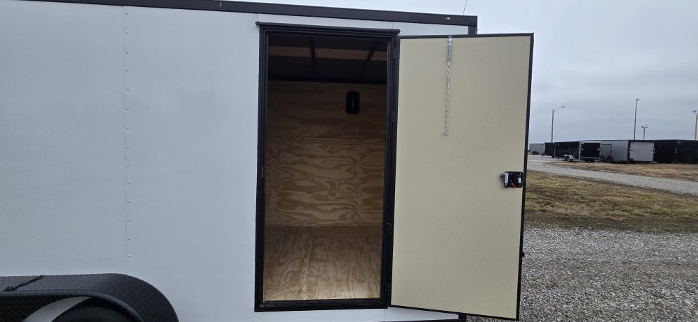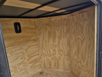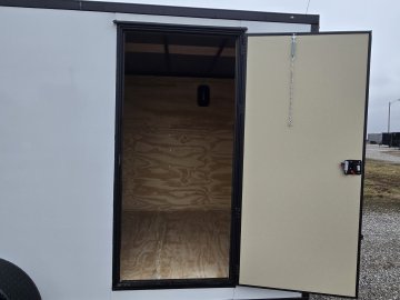 This heavy-duty enclosed trailer is built with a robust 6" steel tube main frame and features 24" on-center spacing for its roof bows, and 16" on floor cross members, and sidewalls, ensuring superior structural integrity. It boasts a durable ¾" plywood floor and 3/8" plywood walls, complemented by a Therma Cool ceiling liner for climate management. Access is convenient through a 36" side door with a flush lock, illuminated by a 12-volt LED dome light. It rides smoothly on 3500 lbs. drop leaf spring axles equipped with electric brakes on both axles and E-Z Lube hubs, all on silver mod wheels with aluminum fenders. Additional features include a 2 5/16" coupler, 24" stone guard, a streamlined V-nose design, and full LED lighting. Inside, 4 floor mount D-rings help secure your cargo, and it connects easily with a 7-way Bargman plug.