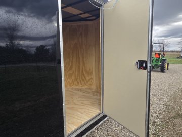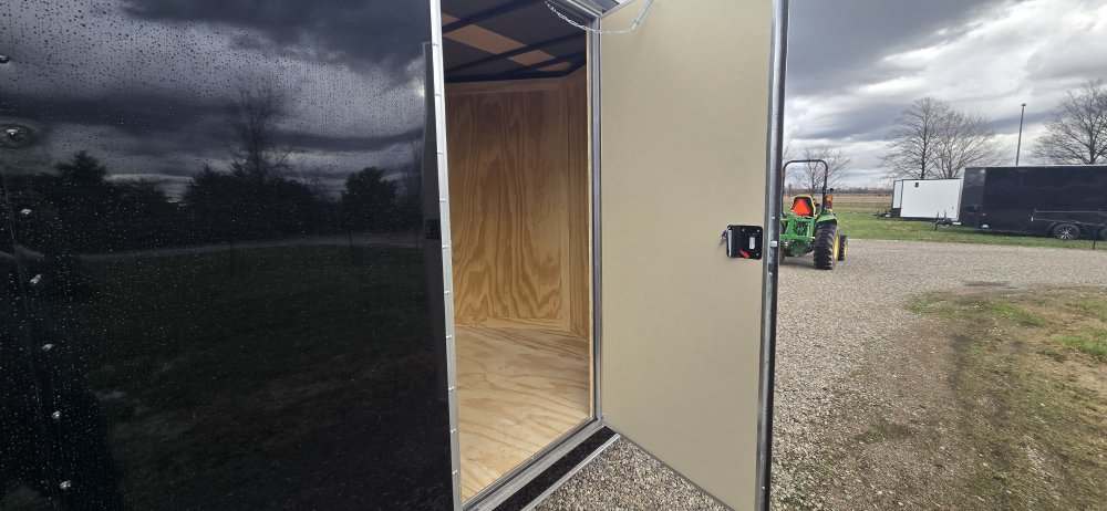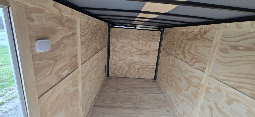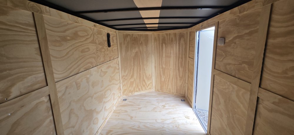 This heavy-duty enclosed trailer is built with a robust 6" steel tube main frame and features 24" on-center spacing for its roof bows, and 16” on floor cross members, and sidewalls, ensuring superior structural integrity. It boasts a durable ¾" plywood floor and 3/8" plywood walls, complemented by a Therma Cool ceiling liner for climate management. Access is convenient through a 36" side door with a flush lock, illuminated by a 12-volt LED dome light. It rides smoothly on 3500 lbs. drop leaf spring axles equipped with electric brakes on both axles and E-Z Lube hubs, all on silver mod wheels with aluminum fenders. Additional features include a 2 5/16" coupler, 24" stone guard, a streamlined V-nose design, and full LED lighting. Inside, 4 floor mount D-rings help secure your cargo, and it connects easily with a 7-way Bargman plug.