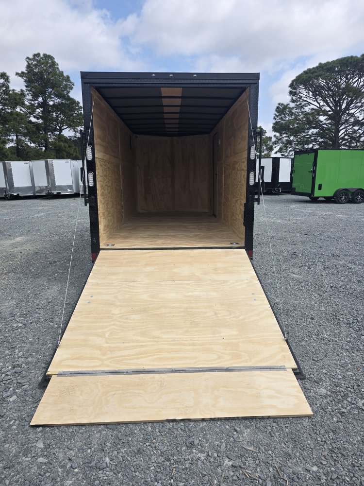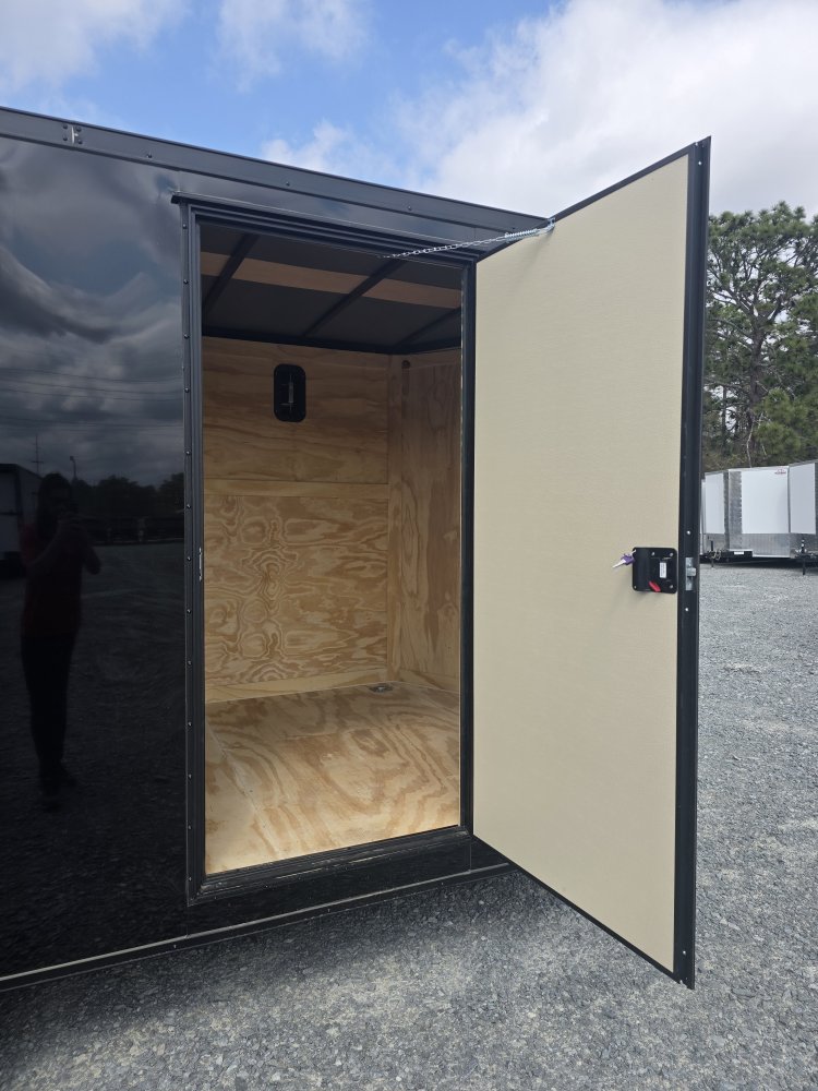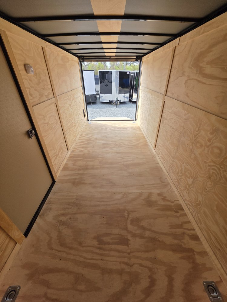 .This heavy-duty enclosed trailer is built with a robust 6" steel tube main frame and features 24" on-center spacing for its roof bows, and 16” on floor cross members, and sidewalls, ensuring superior structural integrity. It boasts a durable ¾" plywood floor and 3/8" plywood walls, complemented by a Therma Cool ceiling liner for climate management. Access is convenient through a 36" side door with a flush lock, illuminated by a 12-volt LED dome light. It rides smoothly on 3500 lbs. drop leaf spring axles equipped with electric brakes on both axles and E-Z Lube hubs, all on silver mod wheels with aluminum fenders. Additional features include a 2 5/16" coupler, 24" stone guard, a streamlined V-nose design, and full LED lighting. Inside, 4 floor mount D-rings help secure your cargo, and it connects easily with a 7-way 6Bargman plug.walls, complemented by a Therma Cool ceiling liner for climate management. Access is convenient through a 36" side door with a flush lock, illuminated by a 12-volt LED dome light. It rides smoothly on 3500 lbs. drop leaf spring axles equipped with electric brakes on both axles and E-Z Lube hubs, all on silver mod wheels with aluminum fenders. Additional features include a 2 5/16" coupler, 24" stone guard, a streamlined V-nose design, and full LED lighting. Inside, 4 floor mount D-rings help secure your cargo, and it connects easily with a 7-way Bargman plug