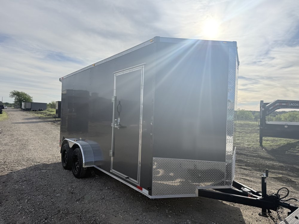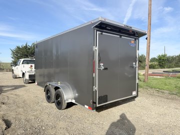 0.08" AP Polycore Siding, 7' Height, Adjustable Coupler, Barlock on Door, Electric Brakes, Ramp Gate, Rear Load Lights, RV Latch w/ Keys, Semi-Screwless Exterior, Single Piece Aluminum Roof