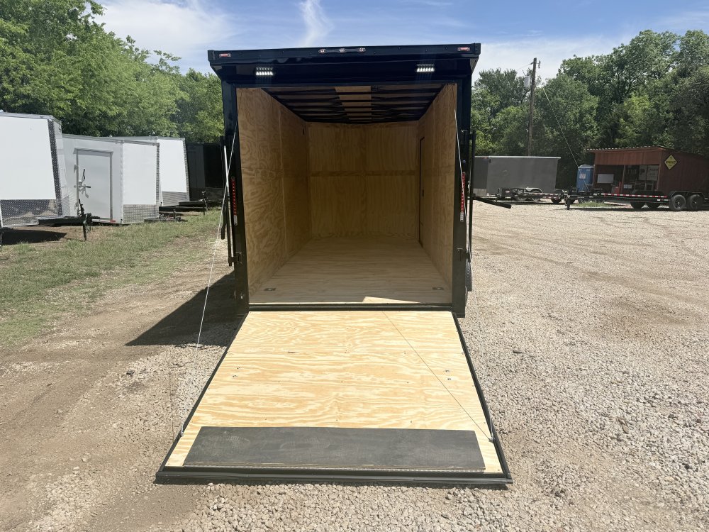 Features: 0.08" AP Polycore Siding, 7' Height, Adjustable Coupler, Barlock on Door, BLACK OUT PKG, Electric Brakes, Ramp Gate, Rear Load Lights, RV Latch w/ Keys, Semi-Screwless Exterior, Single Piece Aluminum Roof