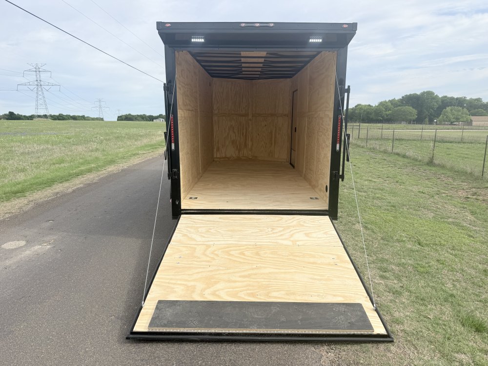 NATM Certified | 2"x4" Square Tube Frame | Tandem 3,500 lbs Axles - EZ Lube Hubs | Electric Brakes On Both Axles| 0.08" Polycore Siding | 16" OC Frame Cross-Members | 16" OC Wall Cross-Members | 24" OC Roof Cross-Members | Tail Spoiler Package w/ Loading Lights w/ Outside Switch | 2 5/16" Bulldog Coupler | 2,000# Jack | Single Piece Aluminum Roof | Interior Height: 7' | 3/4" Plywood: Ramp & Floor | 3/8" Plywood: Walls | LED Lights: Running, Tail, Lic. Plate & Int Lights w/ Switch | Tire/Wheel - ST205/75R15 - 8ply | Custom Fabrication On All Headers and Corners Post | Side Door Dimensions: 36"x72" | Ramp Gate / Barn Doors On Rear Of Trailer (Ramp Gate Dimensions: 75"Wx77"H) | 1 Year Manufacturer Workmanship Warranty | 5 Year Polycore Warranty