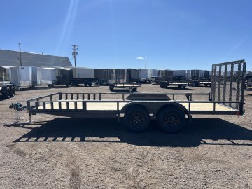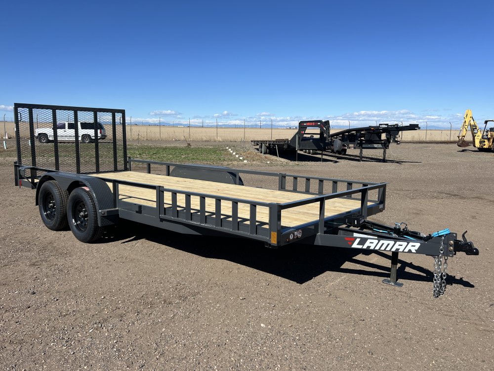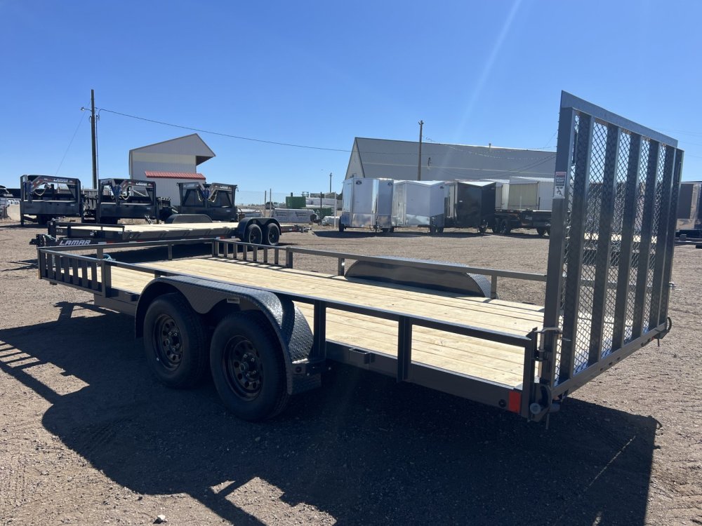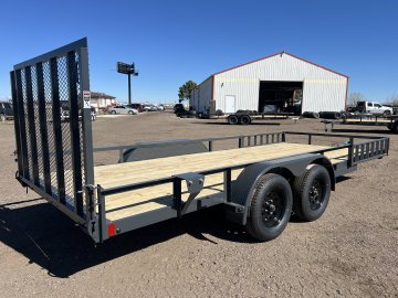 New 2026 Lamar 7ft x 18ft 7k Tandem Axle Bumper Pull Utility & Mesh Ramp Gate [4-ft] (Lamar Gray)