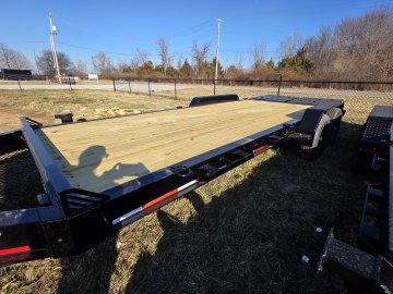 With a 14,000 lb GVWR, dual 7,000 lb brake axles, and heavy-duty 14-ply tires, the EEHI72014 is ready for the toughest loads. The 20' deck (including a 2' dovetail) offers generous loading space, while the rear stand-up ramps make equipment loading effortless and secure.