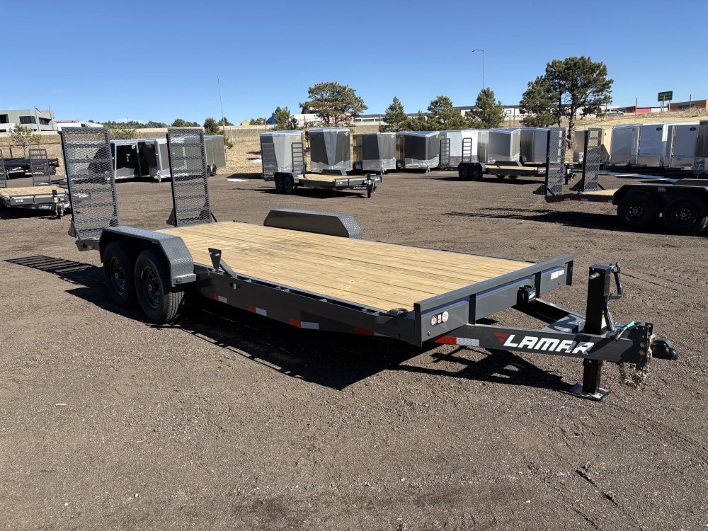 New 2026 Lamar 7ft x 20ft 14k Tandem Axle Bumper Pull Hauler & HD Stand-Up Ramps [5-ft x 24-in] (Lamar Gray)
