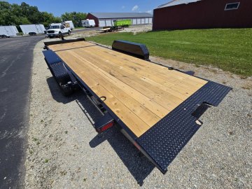 The 14TL is a stationary platform tilt-deck trailer with a 4-foot stationary deck on the front (6-foot deck on the 22). This unit, similar to the 14FT, is designed to haul medium-duty, low-profile equipment.