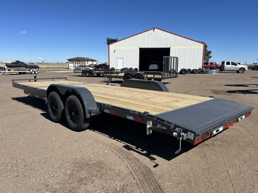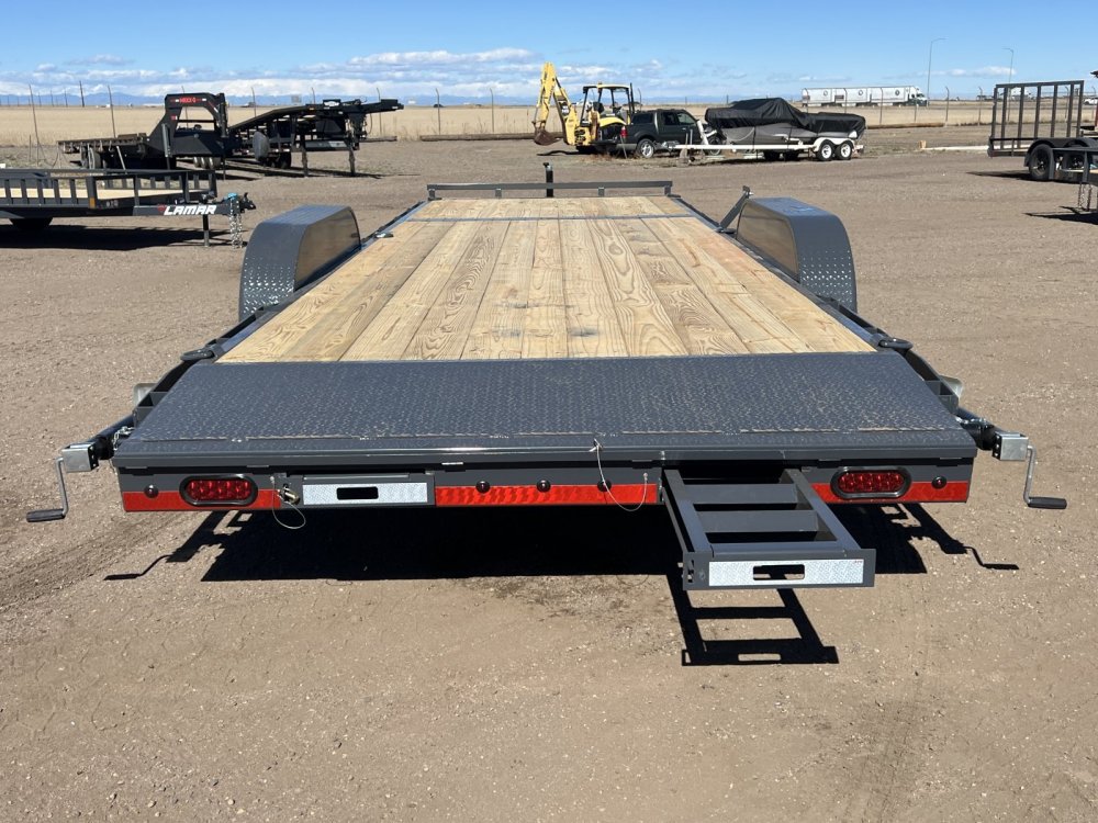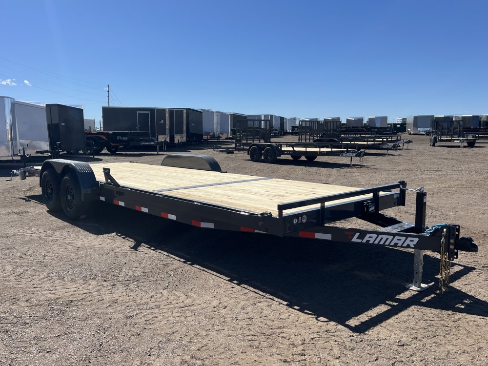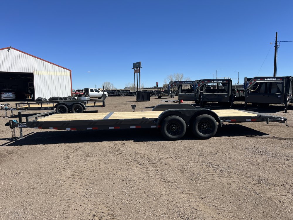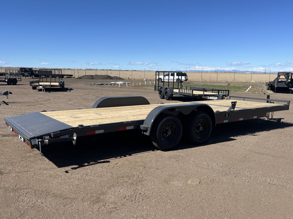 New 2026 Lamar 7ft x 24ft 10k Tandem Axle Bumper Pull Hauler & Rear Slide In Ramps (Lamar Gray)