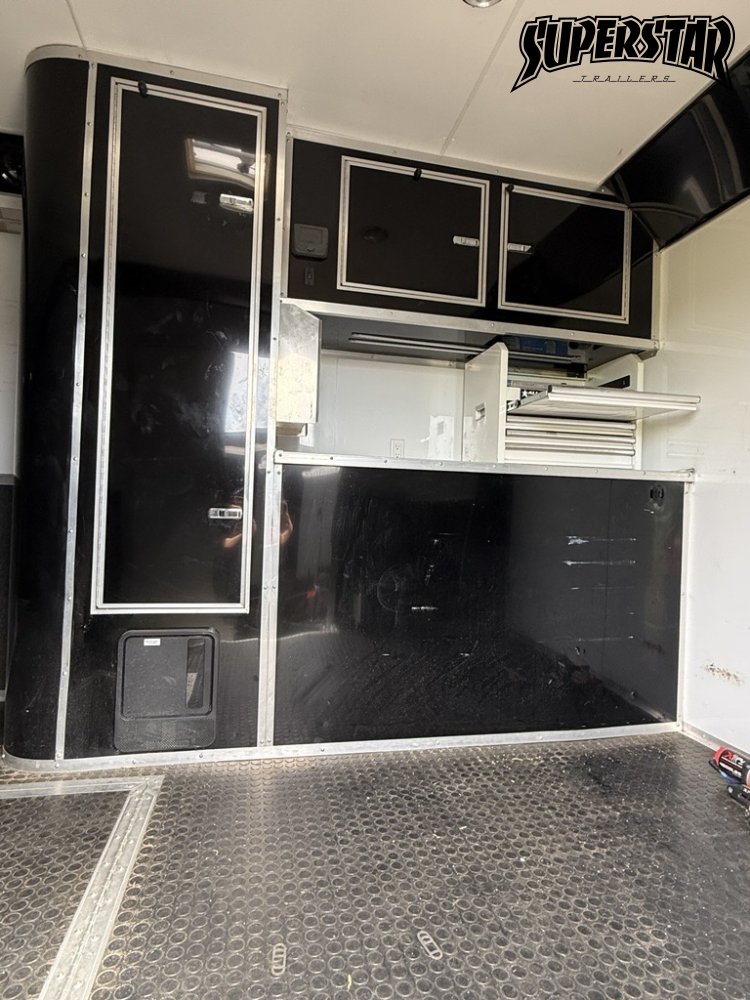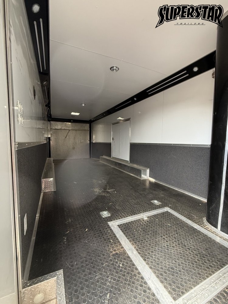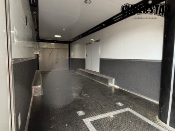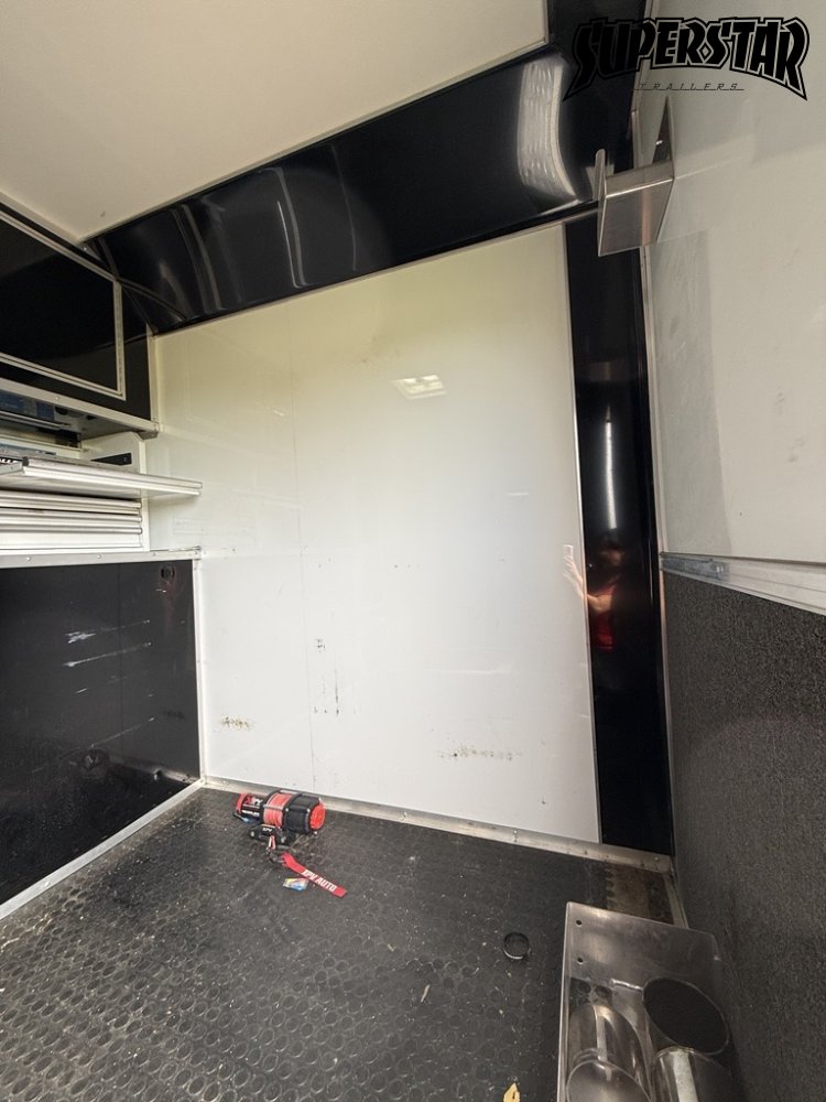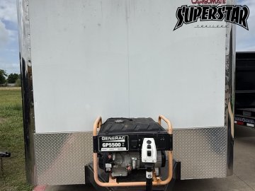 2 5/16" Coupler, 50 Amp Electric PKG, Brake-Away, D-Rings, Generator Platform, Hydraulic Jack, Race Wing, Ramp Door, Road Side Escape Door, Roof Vent, Rubber Coin Flooring, Screwless Exterior, Side Door