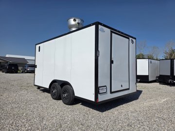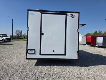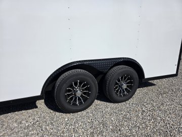 This heavy-duty enclosed trailer is built to last with a robust 8" steel tube main frame and 24" on-center spacing for the roof bows, and 16” on floor cross members, and sidewalls, ensuring superior structural integrity. It features a durable ¾" plywood floor and 3/8" plywood walls, plus a Therma Cool ceiling liner for climate management. For secure transport, it includes electric brakes on both axles, a 7-way Bargman plug, and E-Z Lube hubs on its silver mod wheels. The aluminum fenders add to its functionality and protection. All lighting is LED for reliability.