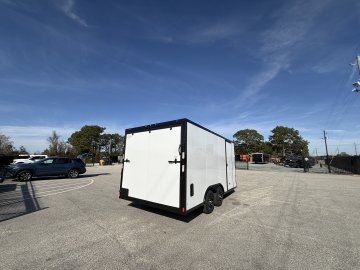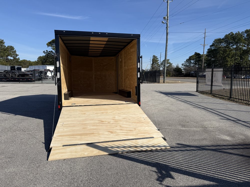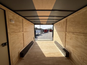 This heavy-duty enclosed trailer is built to last with a robust 6" steel tube main frame and 24" on-center spacing for the roof bows, and 16” on floor cross members, and sidewalls, ensuring superior structural integrity. It features a durable ¾" plywood floor and 3/8" plywood walls, plus a Therma Cool ceiling liner for climate management. Access is easy via a 36" side door with a flush lock and an ATP covered stepwell, illuminated by a 12-volt LED dome light. For secure transport, it includes electric brakes on both axles, a 7-way Bargman plug, and E-Z Lube hubs on its silver mod wheels. The V-nose design, 24" stone guard, and aluminum fenders add to its functionality and protection. Inside, you'll find 4 floor mount D-rings to secure your cargo, and a no-show beavertail for smooth loading. All lighting is LED for reliability.