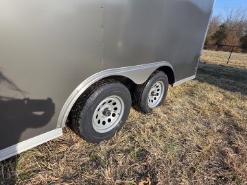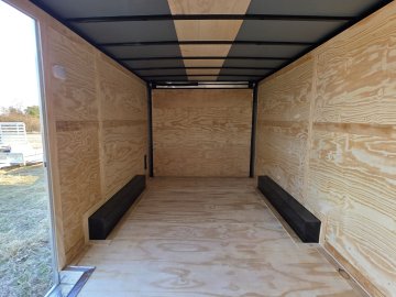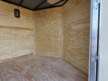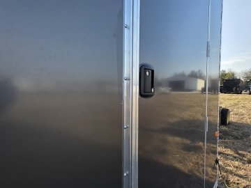 This heavy-duty enclosed trailer is built to last with a robust 6" steel tube main frame and 24" on-center spacing for the roof bows, and 16” on floor cross members, and sidewalls, ensuring superior structural integrity. It features a durable ¾" plywood floor and 3/8" plywood walls, plus a Therma Cool ceiling liner for climate management. Access is easy via a 36" side door with a flush lock and an ATP covered stepwell, illuminated by a 12-volt LED dome light. For secure transport, it includes electric brakes on both axles, a 7-way Bargman plug, and E-Z Lube hubs on its silver mod wheels. The V-nose design, 24" stone guard, and aluminum fenders add to its functionality and protection. Inside, you'll find 4 floor mount D-rings to secure your cargo, and a no-show beavertail for smooth loading. All lighting is LED for reliability.