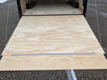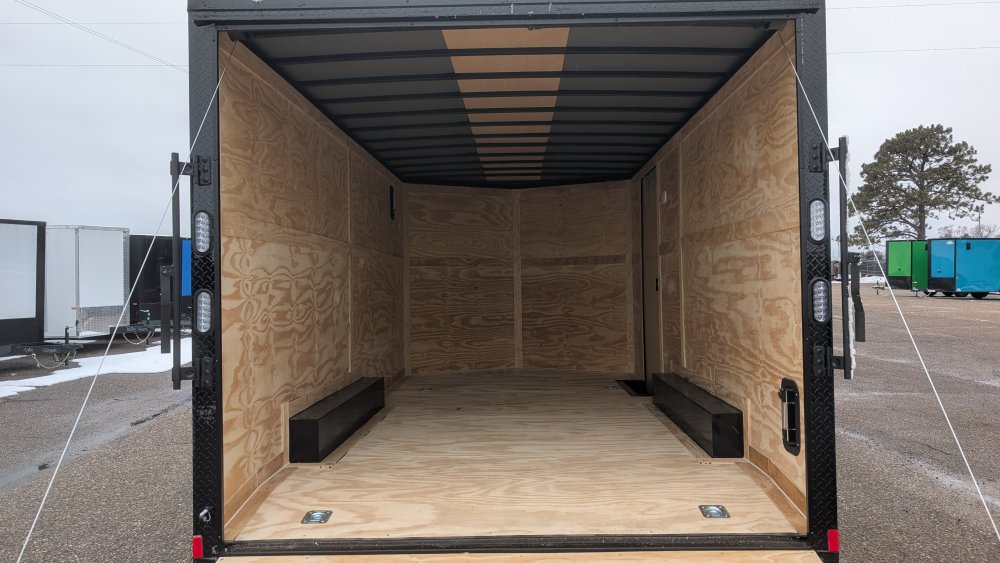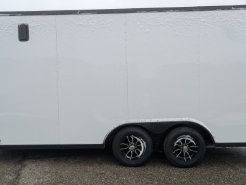 This heavy-duty enclosed trailer is built to last with a robust 6" steel tube main frame and 16" on-center spacing for the roof bows, floor cross members, and sidewalls, ensuring superior structural integrity. It features a durable ¾" plywood floor and 3/8" plywood walls, plus a Therma Cool ceiling liner for climate management. Access is easy via a 36" side door with a flush lock and an ATP covered stepwell, illuminated by a 12-volt LED dome light. For secure transport, it includes electric brakes on both axles, a 7-way Bargman plug, and E-Z Lube hubs on its silver mod wheels. The V-nose design, 24" stone guard, and aluminum fenders add to its functionality and protection. Inside, you'll find 4 floor mount D-rings to secure your cargo, and a no-show beavertail for smooth loading. All lighting is LED for reliability.