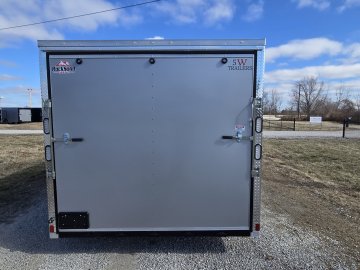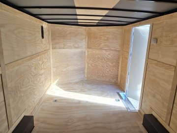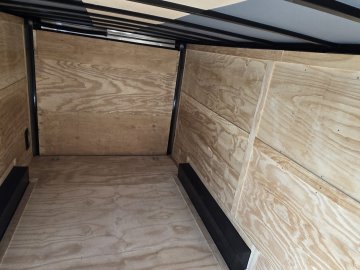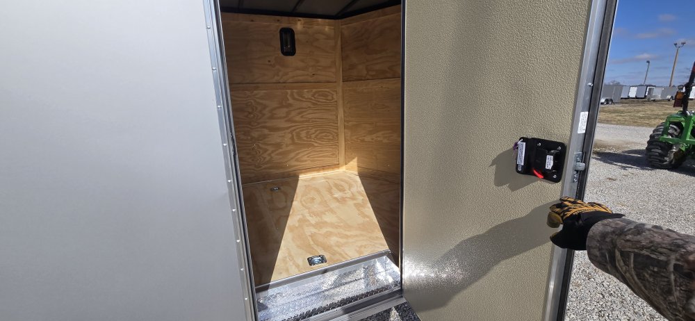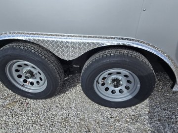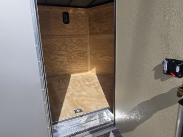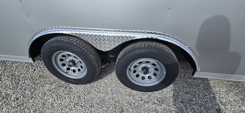 This heavy-duty enclosed trailer is built to last with a robust 6" steel tube main frame and 24" on-center spacing for the roof bows, and 16” on floor cross members, and sidewalls, ensuring superior structural integrity. It features a durable ¾" plywood floor and 3/8" plywood walls, plus a Therma Cool ceiling liner for climate management. Access is easy via a 36" side door with a flush lock and an ATP covered stepwell, illuminated by a 12-volt LED dome light. For secure transport, it includes electric brakes on both axles, a 7-way Bargman plug, and E-Z Lube hubs on its silver mod wheels. The V-nose design, 24" stone guard, and aluminum fenders add to its functionality and protection. Inside, you'll find 4 floor mount D-rings to secure your cargo, and a no-show beavertail for smooth loading. All lighting is LED for reliability.