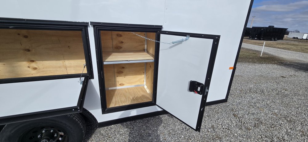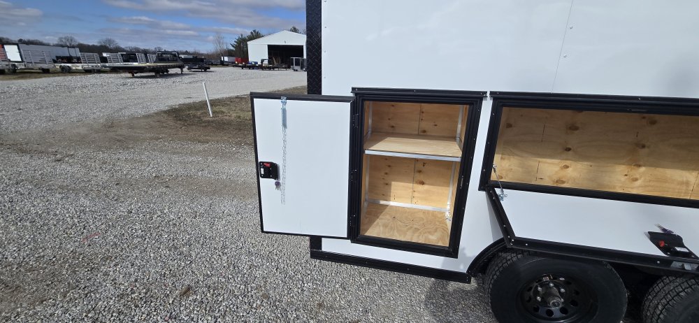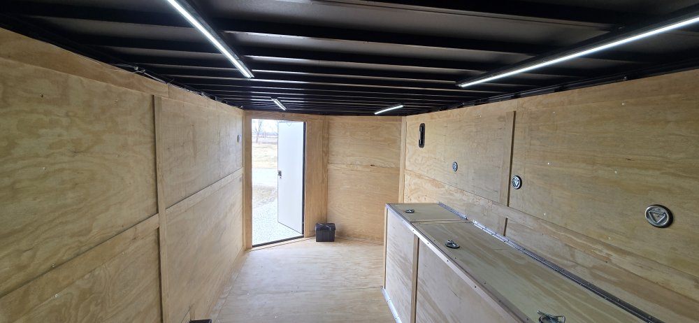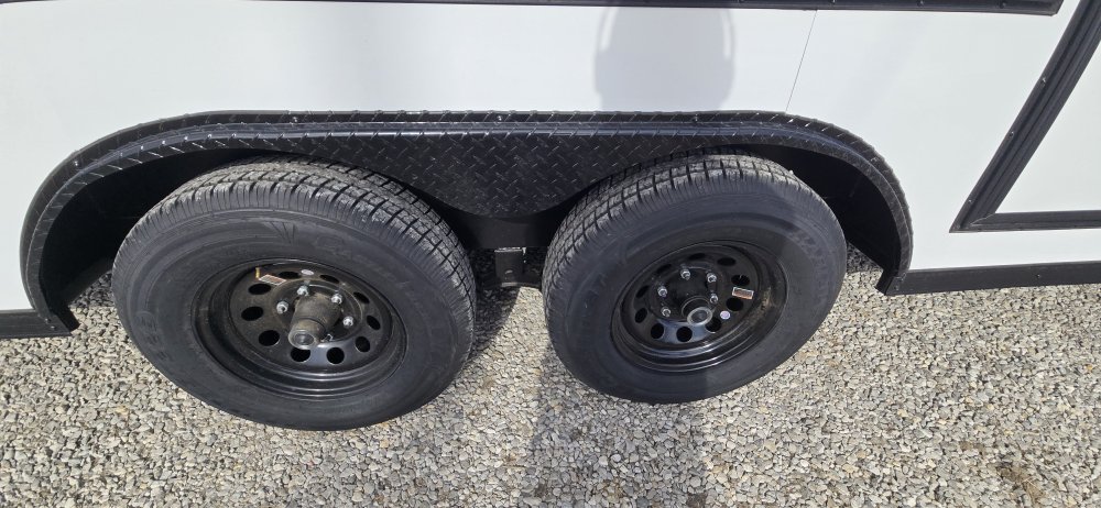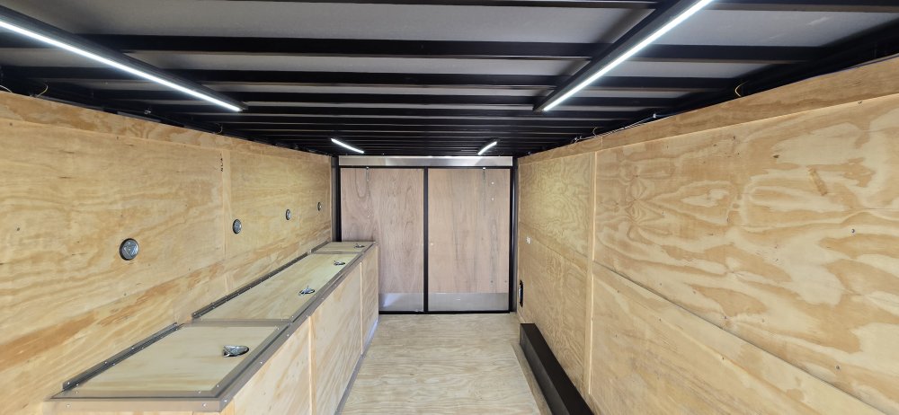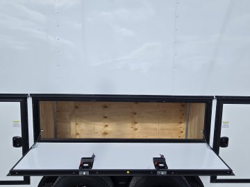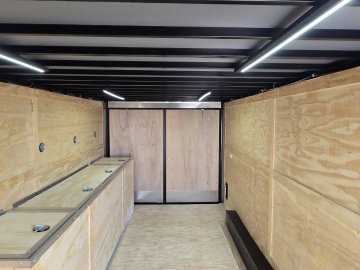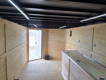 This heavy-duty enclosed trailer is built to last with a robust 6" steel tube main frame and 24" on-center spacing for the roof bows, and 16” on floor cross members, and sidewalls, ensuring superior structural integrity. It features a durable ¾" plywood floor and 3/8" plywood walls, plus a Therma Cool ceiling liner for climate management. Access is easy via a 36" side door with a flush lock and an ATP covered stepwell, illuminated by a 12-volt LED dome light. For secure transport, it includes electric brakes on both axles, a 7-way Bargman plug, and E-Z Lube hubs on its silver mod wheels. The V-nose design, 24" stone guard, and aluminum fenders add to its functionality and protection. Inside, you'll find 4 floor mount D-rings to secure your cargo, and a no-show beavertail for smooth loading. All lighting is LED for reliability.