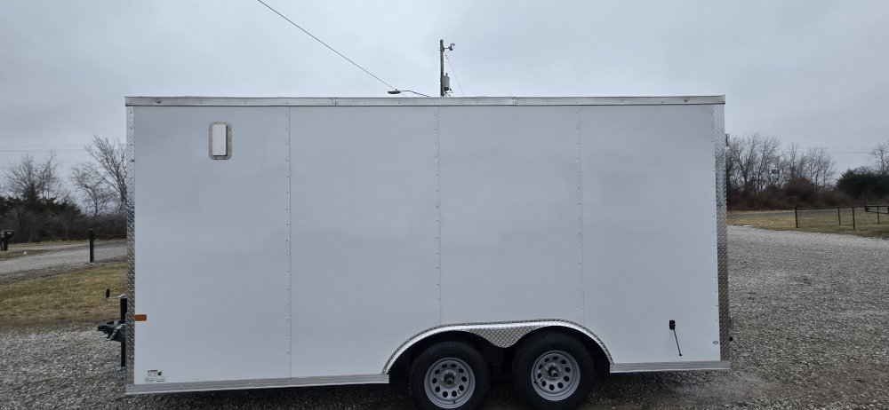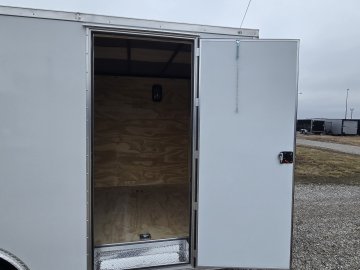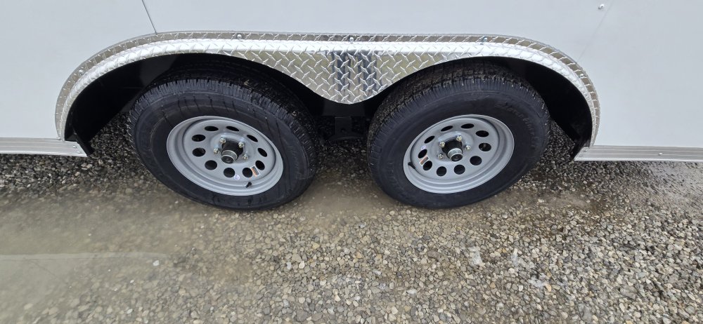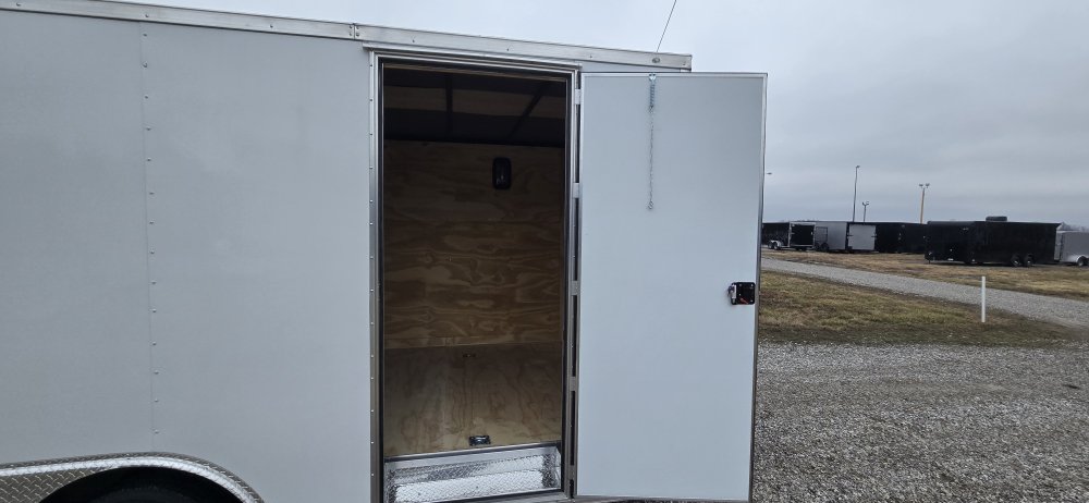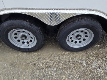 This heavy-duty enclosed trailer is built to last with a robust 6" steel tube main frame and 24" on-center spacing for the roof bows, and 16” on floor cross members, and sidewalls, ensuring superior structural integrity. It features a durable ¾" plywood floor and 3/8" plywood walls, plus a Therma Cool ceiling liner for climate management. Access is easy via a 36" side door with a flush lock and an ATP covered stepwell, illuminated by a 12-volt LED dome light. For secure transport, it includes electric brakes on both axles, a 7-way Bargman plug, and E-Z Lube hubs on its silver mod wheels. The V-nose design, 24" stone guard, and aluminum fenders add to its functionality and protection. Inside, you'll find 4 floor mount D-rings to secure your cargo, and a no-show beavertail for smooth loading. All lighting is LED for reliability.