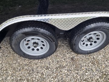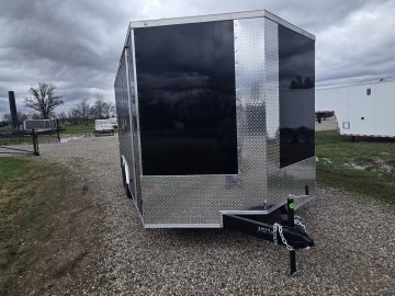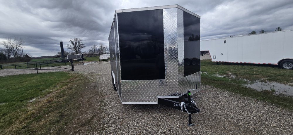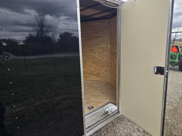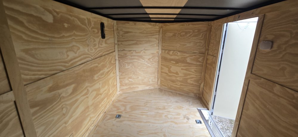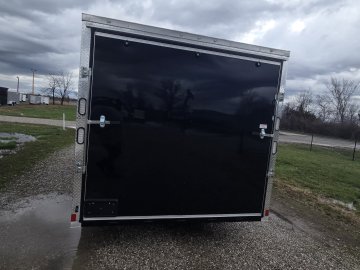 This heavy-duty enclosed trailer is built to last with a robust 6" steel tube main frame and 24" on-center spacing for the roof bows, and 16” on floor cross members, and sidewalls, ensuring superior structural integrity. It features a durable ¾" plywood floor and 3/8" plywood walls, plus a Therma Cool ceiling liner for climate management. Access is easy via a 36" side door with a flush lock and an ATP covered stepwell, illuminated by a 12-volt LED dome light. For secure transport, it includes electric brakes on both axles, a 7-way Bargman plug, and E-Z Lube hubs on its silver mod wheels. The V-nose design, 24" stone guard, and aluminum fenders add to its functionality and protection. Inside, you'll find 4 floor mount D-rings to secure your cargo, and a no-show beavertail for smooth loading. All lighting is LED for reliability.