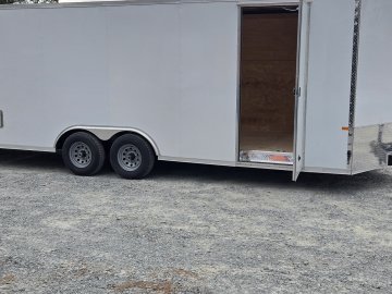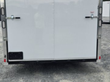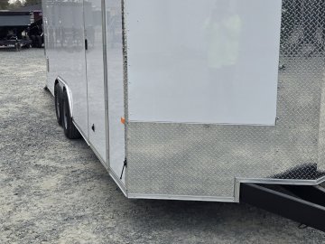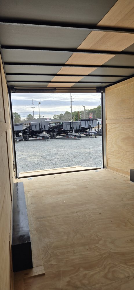 This heavy-duty enclosed trailer is built to last with a robust 6" steel tube main frame and 24" on-center spacing for the roof bows, and 16” on floor cross members, and sidewalls, ensuring superior structural integrity. It features a durable ¾" plywood floor and 3/8" plywood walls, plus a Therma Cool ceiling liner for climate management. Access is easy via a 36" side door with a flush lock and an ATP covered stepwell, illuminated by a 12-volt LED dome light. For secure transport, it includes electric brakes on both axles, a 7-way Bargman plug, and E-Z Lube hubs on its silver mod wheels. The V-nose design, 24" stone guard, and aluminum fenders add to its functionality and protection. Inside, you'll find 4 floor mount D-rings to secure your cargo, and a no-show beavertail for smooth loading. All lighting is LED for reliability.
