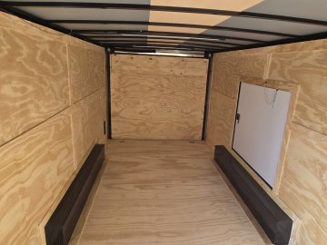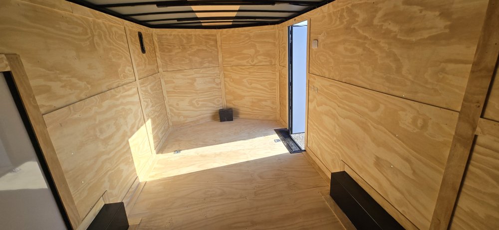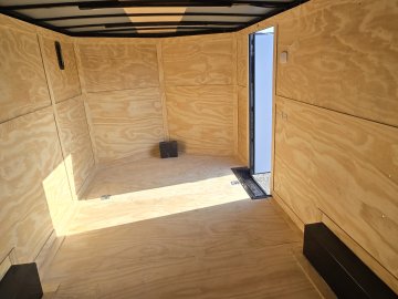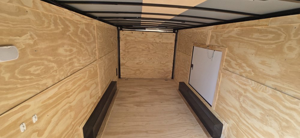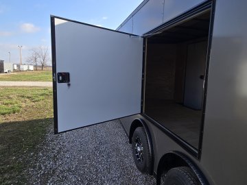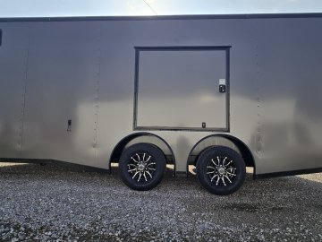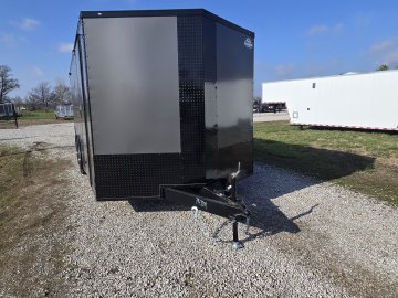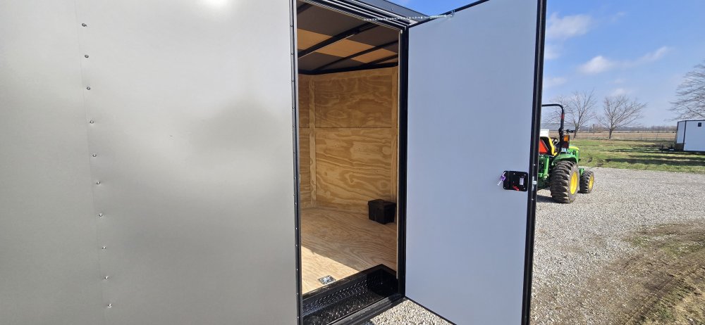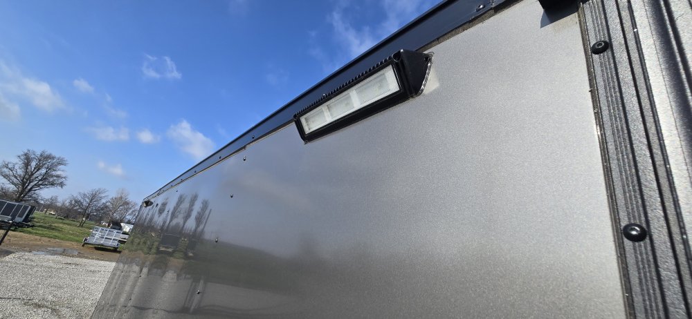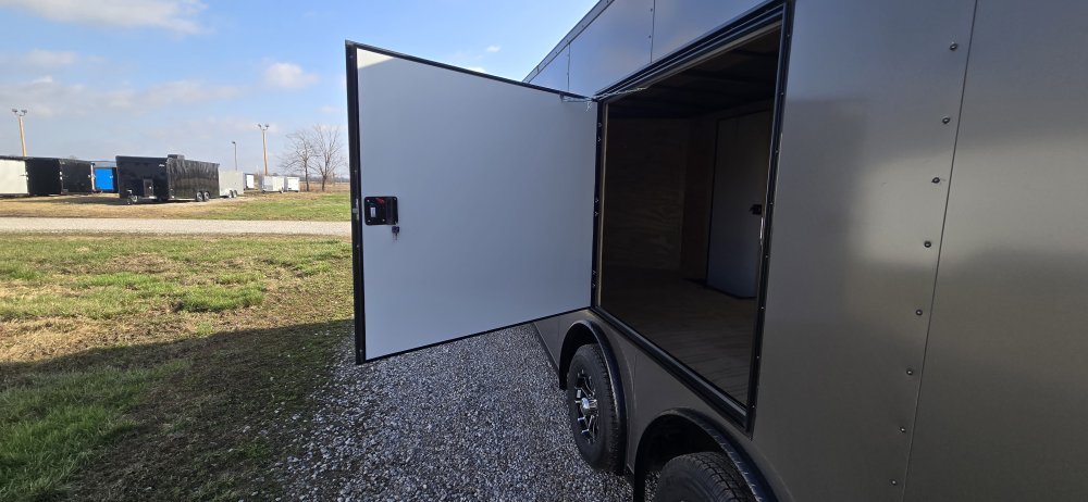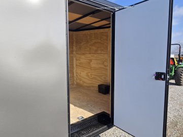 This heavy-duty enclosed trailer is built to last with a robust 6" steel tube main frame and 24" on-center spacing for the roof bows, and 16” on floor cross members, and sidewalls, ensuring superior structural integrity. It features a durable ¾" plywood floor and 3/8" plywood walls, plus a Therma Cool ceiling liner for climate management. Access is easy via a 36" side door with a flush lock and an ATP covered stepwell, illuminated by a 12-volt LED dome light. For secure transport, it includes electric brakes on both axles, a 7-way Bargman plug, and E-Z Lube hubs on its silver mod wheels. The V-nose design, 24" stone guard, and aluminum fenders add to its functionality and protection. Inside, you'll find 4 floor mount D-rings to secure your cargo, and a no-show beavertail for smooth loading. All lighting is LED for reliability.