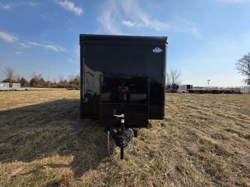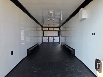 This heavy-duty enclosed trailer is built to last with a robust 6" steel tube main frame and 24" on-center spacing for the roof bows, and 16” on floor cross members, and sidewalls, ensuring superior structural integrity. It features a durable ¾" plywood floor and 3/8" plywood walls, plus a Therma Cool ceiling liner for climate management. Access is easy via a 36" side door with a flush lock and an ATP covered stepwell, illuminated by a 12-volt LED dome light. For secure transport, it includes electric brakes on both axles, a 7-way Bargman plug, and E-Z Lube hubs on its silver mod wheels. The V-nose design, 24" stone guard, and aluminum fenders add to its functionality and protection. Inside, you'll find 4 floor mount D-rings to secure your cargo, and a no-show beavertail for smooth loading. All lighting is LED for reliability.