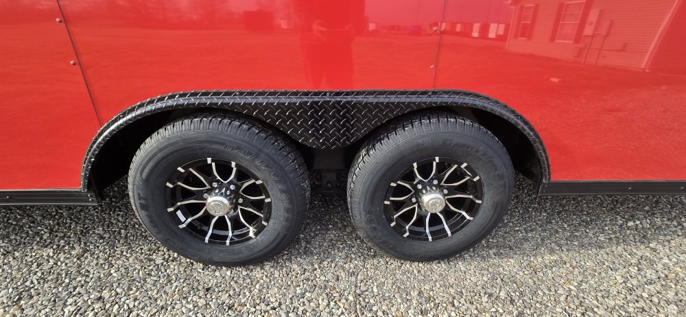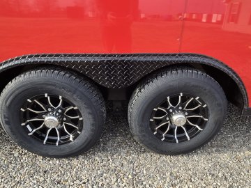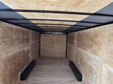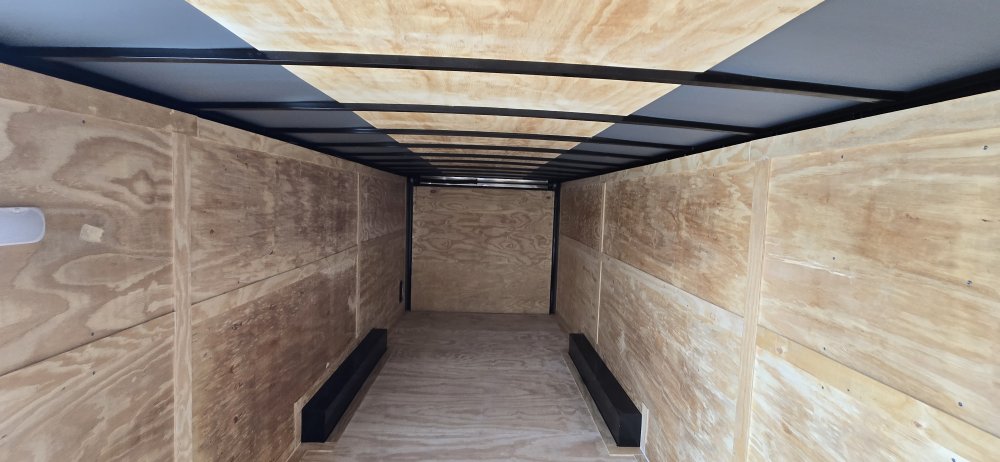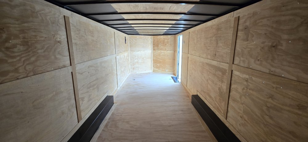 This heavy-duty enclosed trailer is built to last with a robust 6" steel tube main frame and 24" on-center spacing for the roof bows, and 16” on floor cross members, and sidewalls, ensuring superior structural integrity. It features a durable ¾" plywood floor and 3/8" plywood walls, plus a Therma Cool ceiling liner for climate management. Access is easy via a 36" side door with a flush lock and an ATP covered stepwell, illuminated by a 12-volt LED dome light. For secure transport, it includes electric brakes on both axles, a 7-way Bargman plug, and E-Z Lube hubs on its silver mod wheels. The V-nose design, 24" stone guard, and aluminum fenders add to its functionality and protection. Inside, you'll find 4 floor mount D-rings to secure your cargo, and a no-show beavertail for smooth loading. All lighting is LED for reliability.