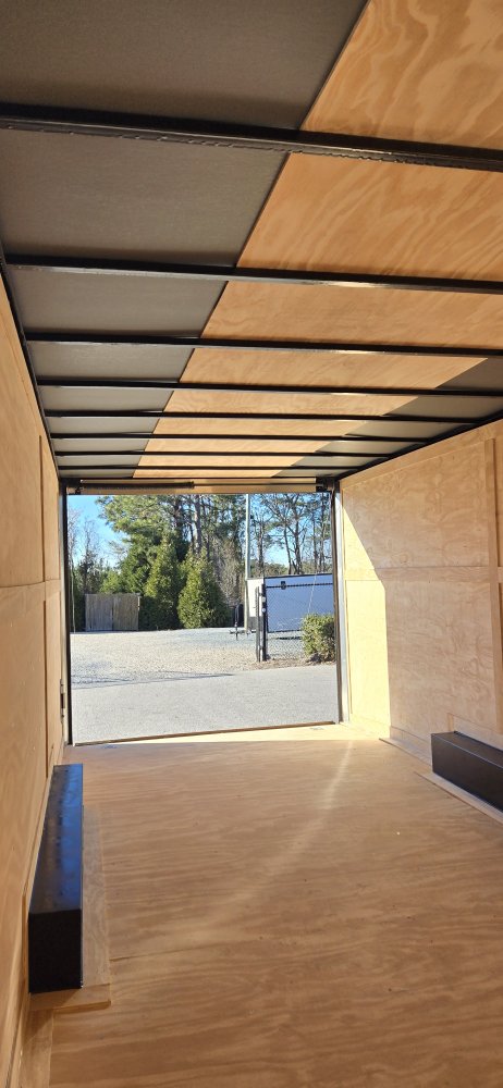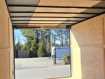 This heavy-duty enclosed trailer is built to last with a robust 6" steel tube main frame and 24" on-center spacing for the roof bows, and 16” on floor cross members, and sidewalls, ensuring superior structural integrity. It features a durable ¾" plywood floor and 3/8" plywood walls, plus a Therma Cool ceiling liner for climate management. Access is easy via a 36" side door with a flush lock and an ATP covered stepwell, illuminated by a 12-volt LED dome light. For secure transport, it includes electric brakes on both axles, a 7-way Bargman plug, and E-Z Lube hubs on its silver mod wheels. The V-nose design, 24" stone guard, and aluminum fenders add to its functionality and protection. Inside, you'll find 4 floor mount D-rings to secure your cargo, and a no-show beavertail for smooth loading. All lighting is LED for reliability.