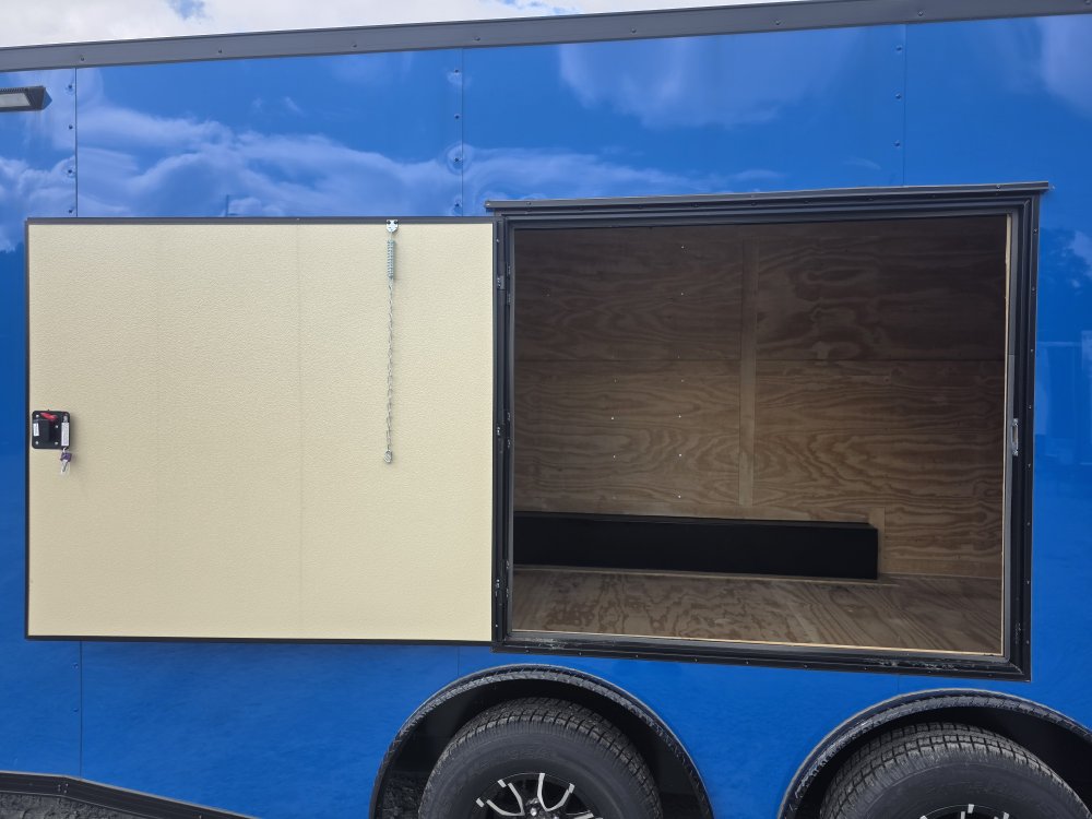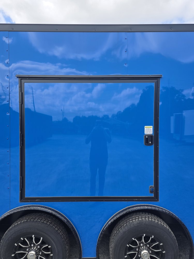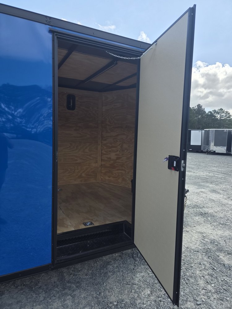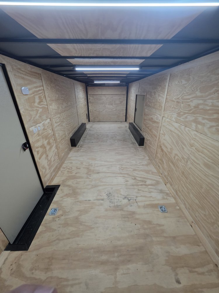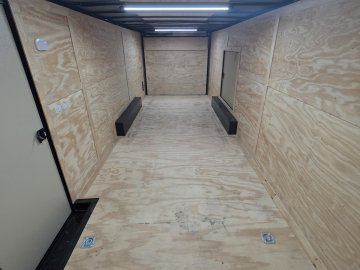 This heavy-duty enclosed trailer is built to last with a robust 6" steel tube main frame and 24" on-center spacing for the roof bows, and 16” on floor cross members, and sidewalls, ensuring superior structural integrity. It features a durable ¾" plywood floor and 3/8" plywood walls, plus a Therma Cool ceiling liner for climate management. Access is easy via a 36" side door with a flush lock and an ATP covered stepwell, illuminated by a 12-volt LED dome light. For secure transport, it includes electric brakes on both axles, a 7-way Bargman plug, and E-Z Lube hubs on its silver mod wheels. The V-nose design, 24" stone guard, and aluminum fenders add to its functionality and protection. Inside, you'll find 4 floor mount D-rings to secure your cargo, and a no-show beavertail for smooth loading. All lighting is LED for reliability.