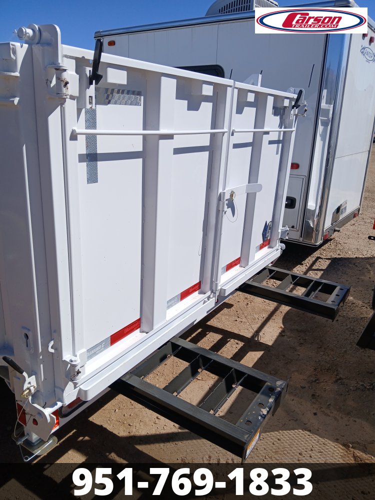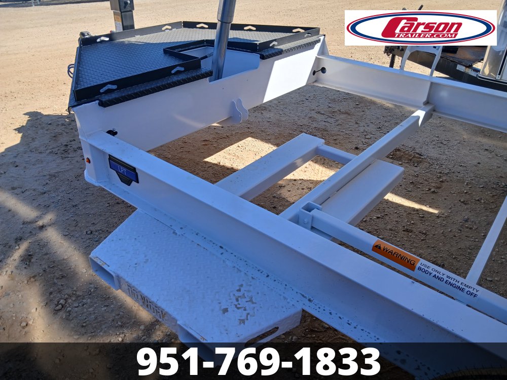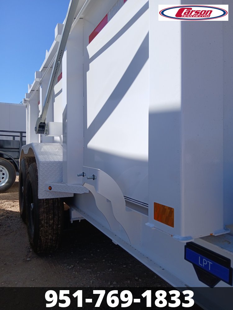FRAME SIZE, L12X82 AXLE, 2 - 7K DROP AXLE, ELECTRIC DRUM BRAKES TRAILER OVERHEAD TRAILER LABOR DECALS, LPT TARP, 20' HEAVY DUTY, BLACK MESH W/LONG ARM TARP SYSTEM LIGHTS, ALL LED PAINT, ARCTIC WHITE TIRES, ST235/80R16 RADIAL 14 PLY, 8 HOLE BLACK TIE DOWN, STANDARD 5/8" D-RINGS (4 TOTAL) BATTERY - GROUP 27 HYDRAULIC SYSTEM, POWER UP, GRAVITY DOWN JACK, SINGLE 15K SIMOL 2-SPEED DROP-LEG JACK STABILIZER JACK, DROP-LEG (PAIR) FORK HOLDER STEP - DRIVER SIDE FENDER, 3/16" DIA PLATE, SUPER HEAVY DUTY BOARD BRACKETS W/BOARDS & RAISED FRONT SUSPENSION, 6-LEAF SLIPPER ROLLER SPRINGS FRAME, 8"X15# I-BEAM; 16" CENTER CROSSMEMBERS COUPLER, 2-5/16", 21K DEMCO EZ-LATCH (ADJ CHANNEL) TONGUE, ENGINEERED W/ HD V-TONGUE LID SPAREMOUNT - PASSENGER (CURB) SIDE GATE, 3-WAY DUMP GATE (STANDARD) RAMPS, 78" REAR SLIDE-IN (3" IBEAM) SIDES, 44" TALL, 10GA INTEGRAL W/ FLOOR (L12)
