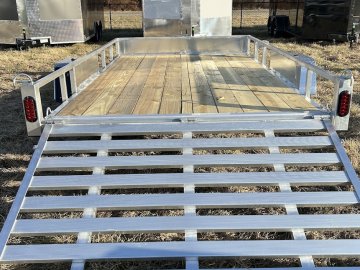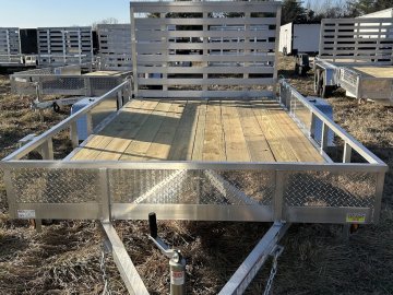 This utility trailer features an aluminum frame that resists rust and corrosion, ensuring long-lasting performance and reduced maintenance compared to steel-only trailers. Its single 3,500 lb. axle provides a reliable hauling capacity, while the slip-resistant decking offers a secure surface for loading and transport. With its rear ramp gate, loading and unloading equipment is simple and efficient.