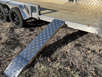 Built for convenience, it features a 7K square jack for easy and stable hitching, as well as a durable treated wood deck that stands up to tough jobs. The removable ATV ramps provide smooth loading and unloading, whether you’re hauling ATVs, mowers, or small machinery. Dual 3,500 lb axles with electric brakes ensure safe and controlled towing, while stake pockets, tie-down points, and LED lighting add flexibility and safety on the road.