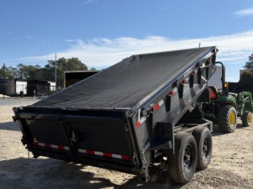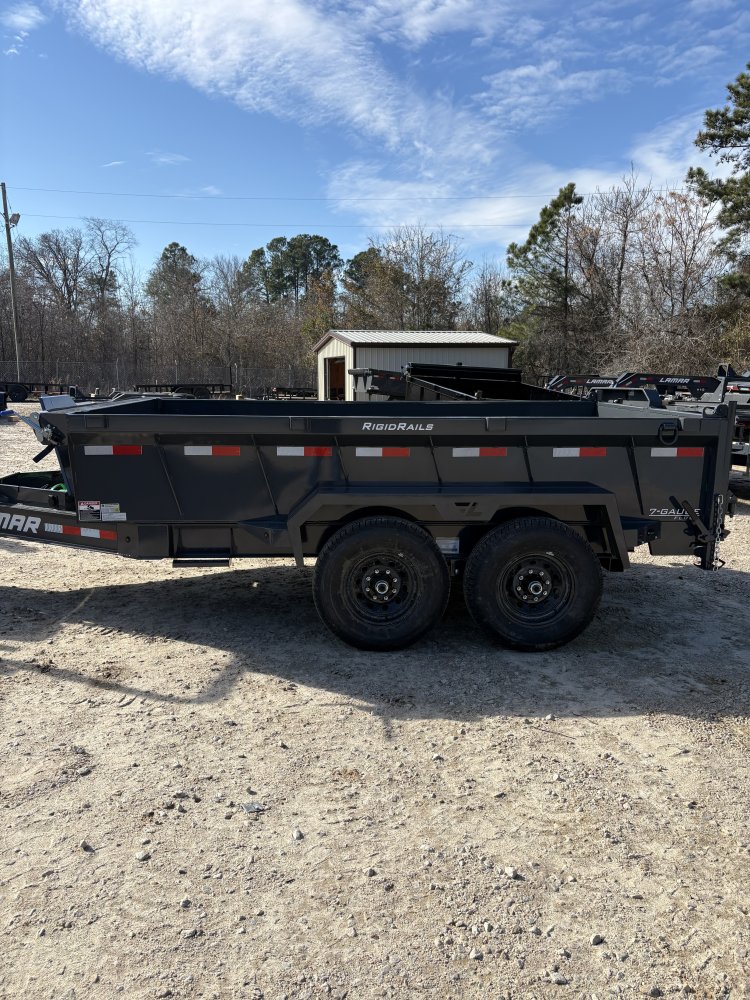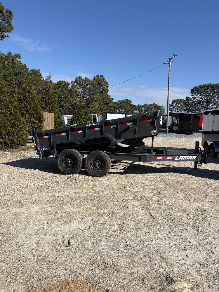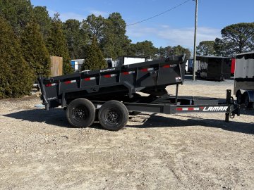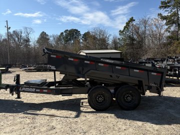The Lamar DL831227 is a robust and versatile low-profile dump trailer, built to handle tough jobs with ease. Designed for both homeowners and commercial use, it boasts a 14,000-pound Gross Vehicle Weight Rating (GVWR) and a payload capacity of approximately 9,755 pounds. This 83-inch by 12-foot trailer features a heavy-duty 8-inch, 13-pound I-beam frame and a solid 7-gauge steel floor, ensuring durability and stability when hauling heavy loads like rock, dirt, or construction debris. It comes equipped with a reliable hydraulic scissor lift for smooth dumping, a two-way spreader/barn door gate for flexible unloading, and a deluxe tarp kit to secure your cargo. Other standard features include a 10K drop-leg jack, slide-in ramps, a 5-amp trickle charger, and LED lights, all supported by a durable powder-coated finish and a fully sealed, weather-resistant wire harness.