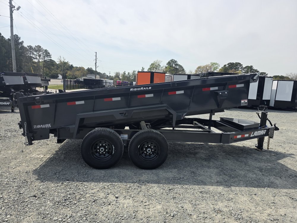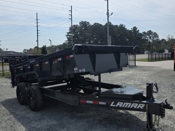 If you’re looking for a workhorse that balances heavy-duty capability with day-to-day usability, the Lamar DL831427 is essentially their “goldilocks” low-profile dump trailer. It’s an 83-inch wide by 14-foot long unit sitting on two 7,000-lb axles, giving you a solid 14,000-lb GVWR—enough payload capacity (usually around 9,400 lbs) to haul a skid steer or a heavy load of gravel without breaking a sweat.