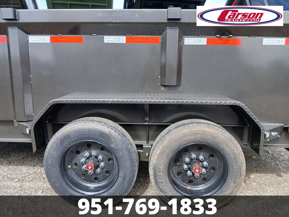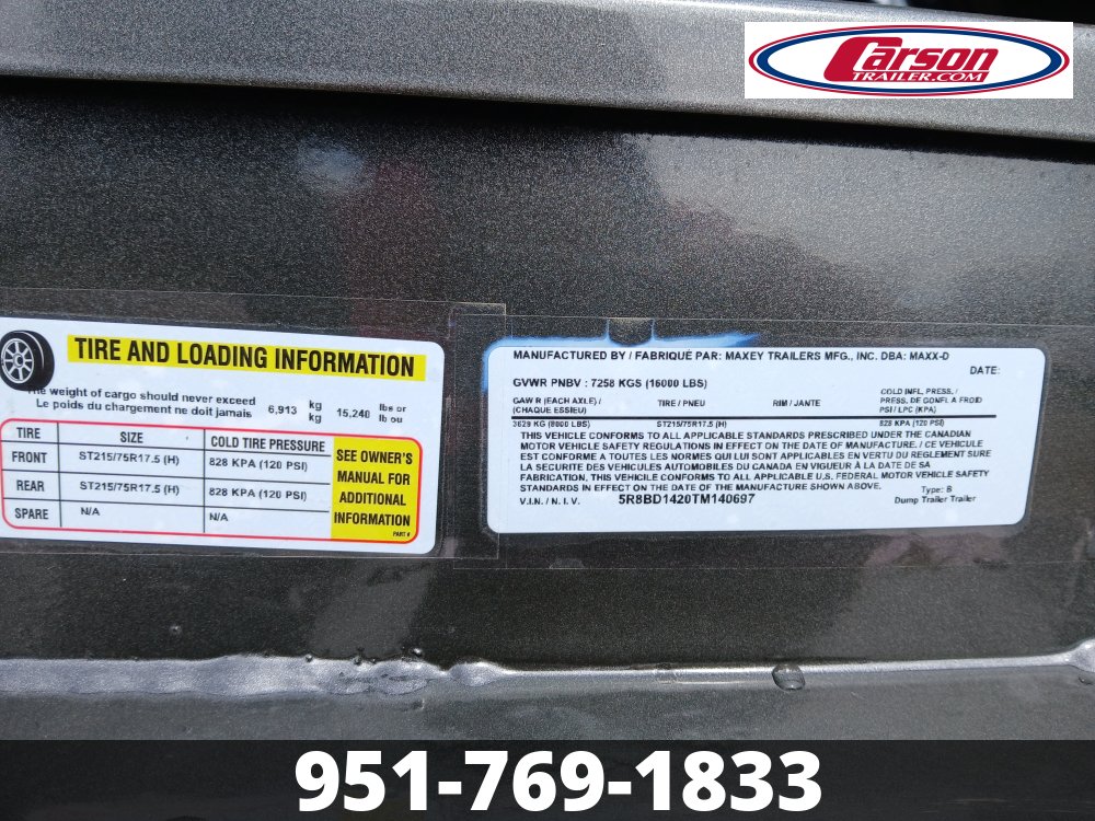 G12 - 16,000 LB GVWR C10 - 2 5/16" ADJUSTABLE COUPLER J08 - 1-HYDRAULIC JACK N20 - I-BEAM TONGUE WITH TOOLBOX F113 - 8" X 15LB I-BEAM FRAME WITH TELESCOPING CYLINDER X07 - 3" CHANNEL ON 12" CENTERS R26 - 3' SOLID SIDES ON DUMP TRAILER D05 - NO DOVETAIL/7' SLIDE-IN RAMPS A74 - 2-8K ELECTRIC BRAKE AXLES S02 - SLIPPER SPRING SUSPENSION T29 - SINGLES (4) ST215/75R17.5 H TIRES FOR 2-8K P06 - DOUBLE BROKE DIAMOND PLATE FENDERS E13 - 7 GAUGE FLOOR ONLY/10 GAUGE SIDES L03 - FLUSHMOUNT LED'S / STANDARD SEALED WIRING HARNESS O02 - MAXXD GRAY METALLIC & PRIMER Y05 - PULL BACK TARP SYSTEM Y64 - WIRELESS REMOTE W/HYD&POWER OPTIONS W/ NOCO BATTERY CHARGERS D146 - SPLIT/SPREADER GATE STANDARD J28 - REAR SUPPORT STANDS Y03 - SPARE MOUNT Y15 - AGM GROUP 31 BATTERY
