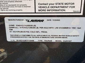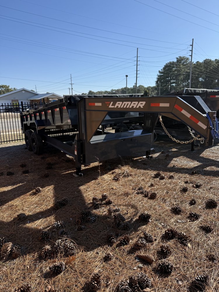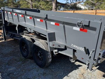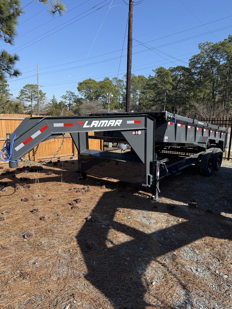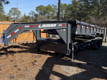 The Lamar Trailer Model DL831627 is a heavy-duty 16-foot steel dump trailer designed for rugged worksite hauling and dumping tasks. Built with a robust 14,000 lbs GVWR and dual 7,000 lbs axles, it offers a substantial 9,135 lbs payload capacity white maintaining a manageable empty weight around 4,865 lbs. The trailer features a durable power coated steel frame, LED lighting, slide-in ramps, and a two-way spreader gate for versatile loading and unloading. It’s dump bed is ideal for transporting and discharging bulk materials like gravel, mulch, or debris. This includes accessories like mesh tarp kit with pull bar and tie-down D-rings.