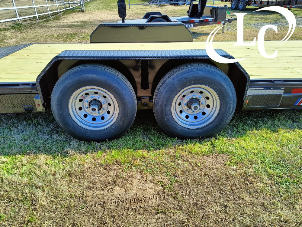 1 - Brake, 10ply Radial Tire (ST235X80R-16 / 6 Lug / PSI 80), 12k Ram Jack, 2- 5/16 Adjustable Hitch, 2ft Diamond Dove Tail, 3" Crossmembers every 16", 6" Channel Frame, 7k Dexter Axles, Diamond Fenders, Led Lights, Set of Ramps, Spare Mount, Treated Lumber