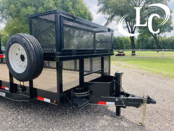 12k Ram Jack, 2 - Brakes, 4ft Expanded Metal (3/4 - #9), 5ft split gate with kickers and springs, 6" Channel Frame, 7k Dexter Axles, Blower Cage 2ft tall x 2ft long x 76" wide, Diamond Fenders, Led Lights, Shovel Rack, Spare Tire, Treated Lumber, Weed eater racks