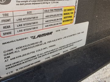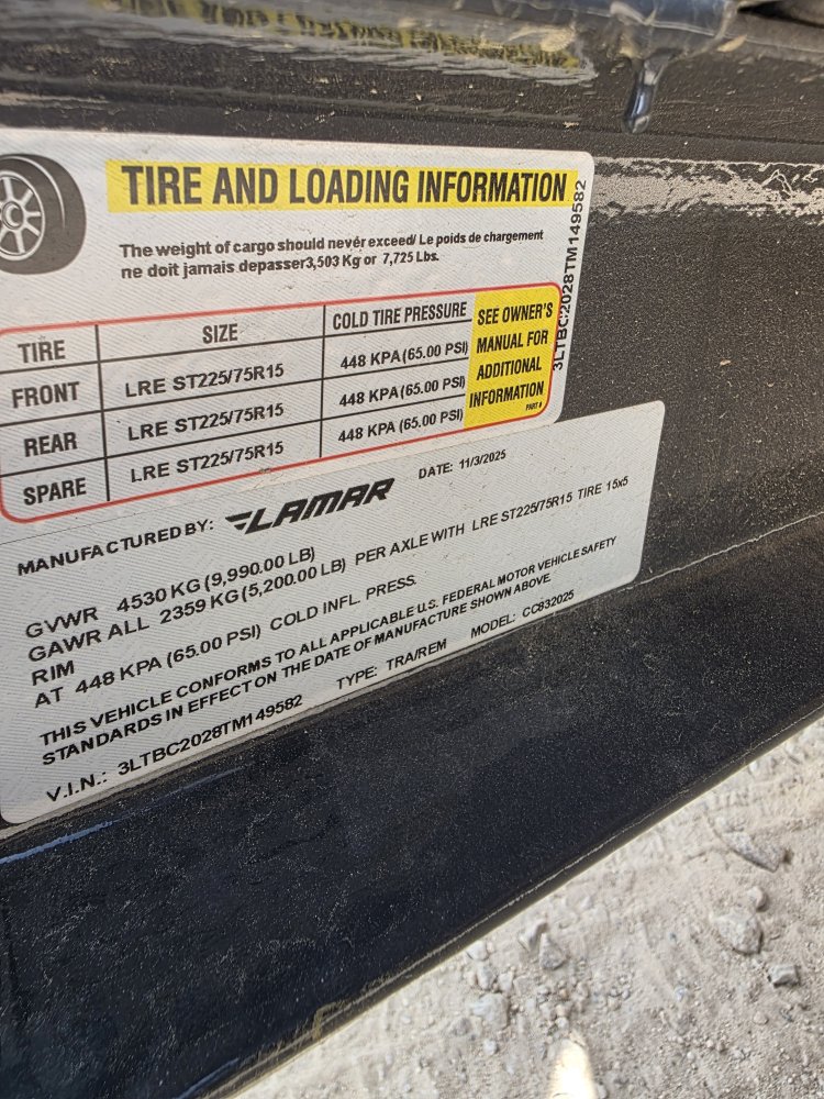 The Lamar CC832025MX is a heavy-duty 83 inch wide by 20 foot bumper pull car hauler designed for transporting vehicles and equipment with a 10,000 lb Gross Vehicle Weight Rating(GVWR). Built on a rugged 5” channel steel frame with 24” on center crossmembers and finished in durable gray power coat, it features tandem 5,200 axles with electric brakes, a treated yellow pine deck, a 2 foot dovetail and slide-in ramps for easier loading and unloading. Additional practical components include 7,000 lb drop leg jack, 2 5/16” adjustable coupler, rub rail and stake pockets for tie downs, smooth teardrop fenders, LED lighting, and a weather-resistant harness–all combining to offer roughly 7,700 lb of payload capacity and reliable performance for hauling cars, machinery or other heavy loads.