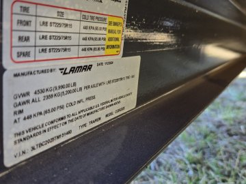 The Lamar CC832025 is a specific configuration of the Classic Carhauler trailer line, known for its durable, over-engineered construction and 10,000 lbs. (10K) Gross Vehicle Weight Rating (GVWR). Measuring 83" wide and 20' long, this bumper-pull car hauler typically features a robust 5" channel frame, a treated yellow pine floor, and is equipped with tandem 5.2K axles, often utilizing a combination of idler and electric brake springs. Designed for easy vehicle loading, the trailer includes a 2-foot dovetail, slide-in ramps, and smooth teardrop fenders. Furthermore, it is built with premium components like an Arctic Wire Harness and finished with a super-durable powder coat, all backed by a 3-year structural warranty. With a dry weight of approximately 2,265 lbs., the CC832025 offers a substantial payload capacity of around 7,735 lbs.