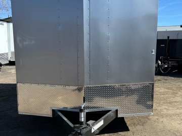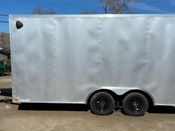 This 8.5x16 Indigo DLX Flat Top V-Nose Enclosed Car Hauler for sale in Carson City, Nevada is designed for secure vehicle transport and dependable cargo hauling across Northern Nevada. The enclosed structure protects cars, motorcycles, UTVs, and equipment from weather and road debris, while the V-nose front improves towing stability and maximizes interior cargo space. With its durable silver exterior and versatile size, this trailer is ideal for both work and recreational hauling.
