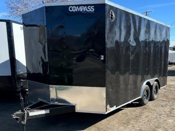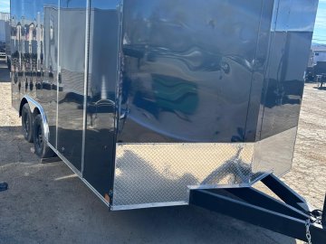 This 8.5x16 Indigo DLX Flat Top V-Nose Enclosed Trailer for sale in Carson City, Nevada is a versatile cargo trailer built for secure hauling and dependable performance. With a 7K GVWR rating and a durable black exterior, this trailer is ideal for transporting tools, equipment, motorcycles, and business inventory while protecting cargo from weather and road debris across Northern Nevada.