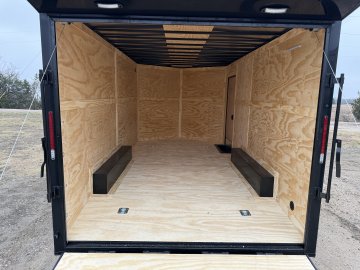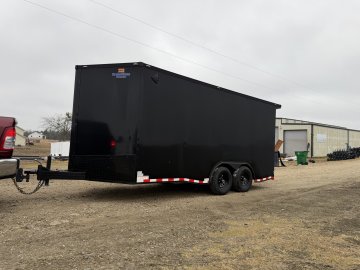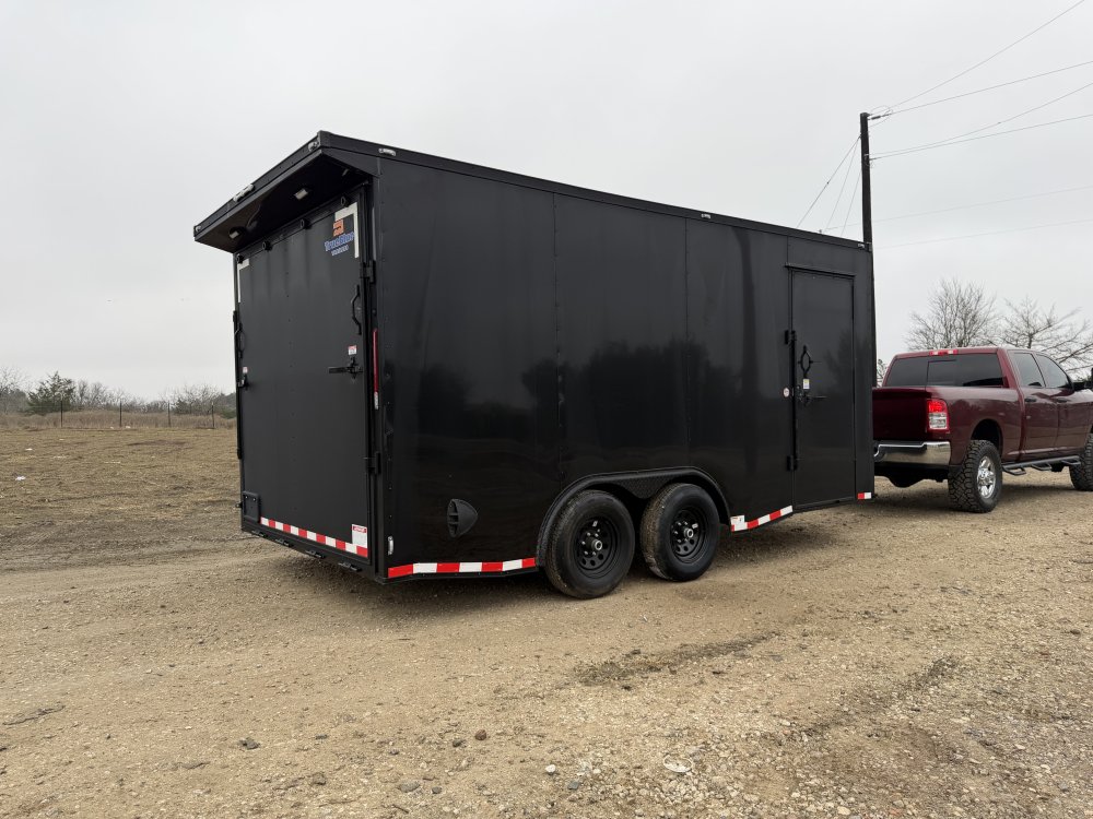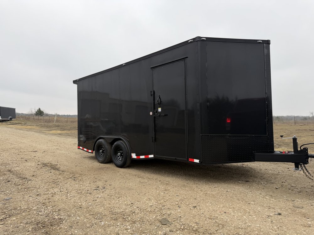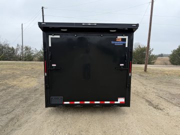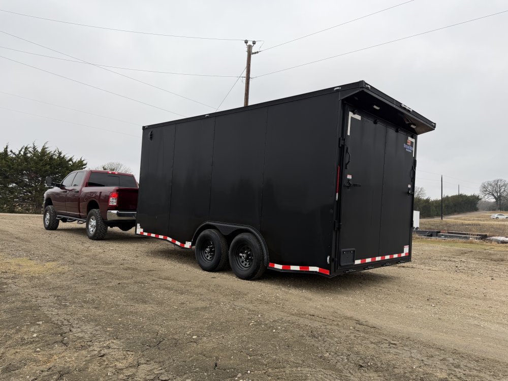 0.08" AP Polycore Siding, 7' Height, Adjustable Coupler, BLACK OUT PKG, Dovetail, Electric Brakes, Ramp Gate, Rear Load Lights, RV Latch w/ Keys, Semi-Screwless Exterior, Single Piece Aluminum Roof